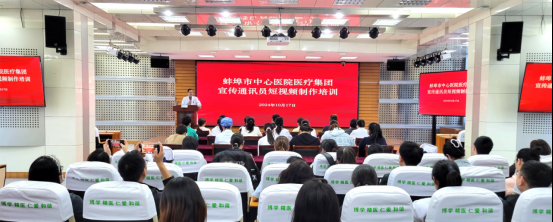 为进一步强化宣传队伍建设,提升宣传工作质量,10月17日下午,市中心医院(市第三人民医院)医疗集团在市中心医院综合楼13楼会议室开展了宣传通讯员短视频制作培训。蚌埠日报社新媒体开发部主任李博应邀授课,市中心医院党委副书记、副院长许杰出席并致辞,市中心医院医疗集团各院区宣传通讯员及短视频爱好者共计100余人参加了培训。