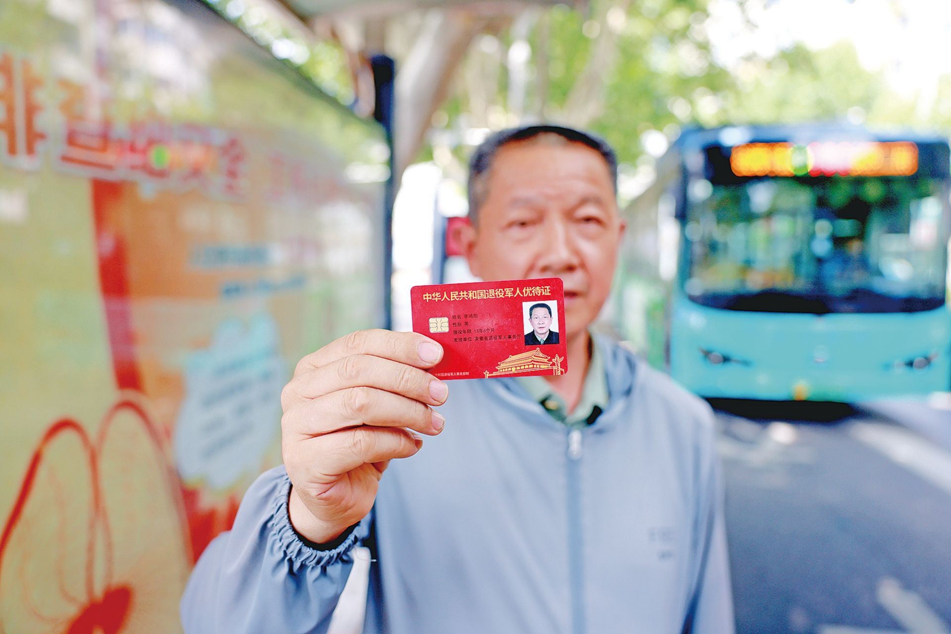 近年来,我市落实免费乘公交等多项退役军人优待政策,图为7月30日我市退役军人李鸿阳展示退役军人优待证。