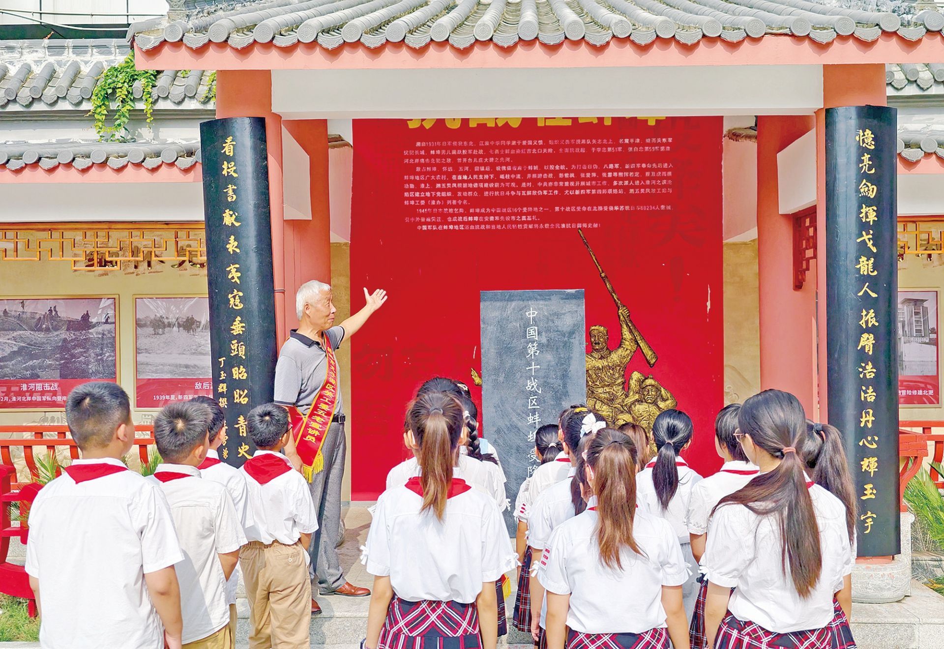 蚌埠市关工委五老报告团、龙子湖区关工委五老报告团与蚌埠市凤阳路第一小学师生走进抗战胜利公园,开展爱国主义教育活动。
