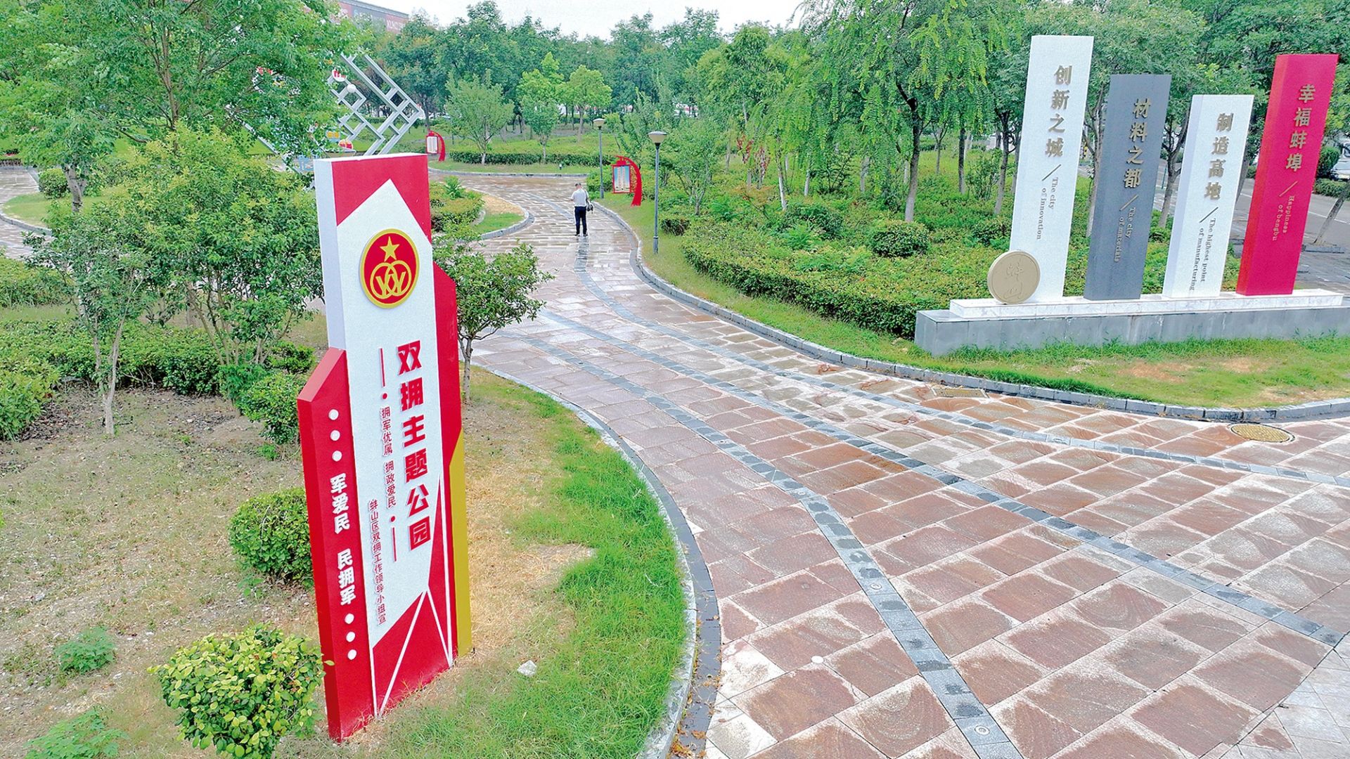 近年来,我市在市区建成多处双拥主题公园,图为7月31日,记者使用无人机航拍位于朝阳路与东海大道交口的双拥主题公园。(刘晨 陈昂 宋春堂)