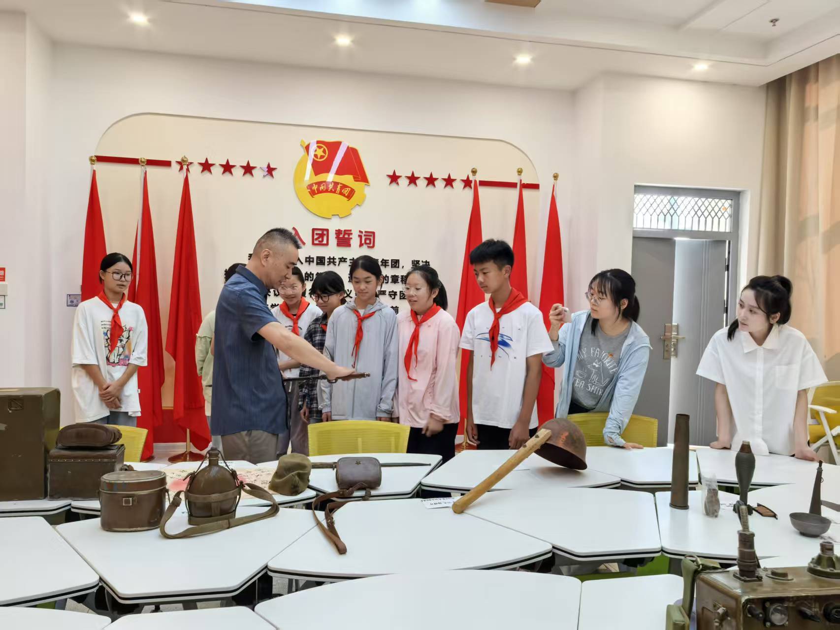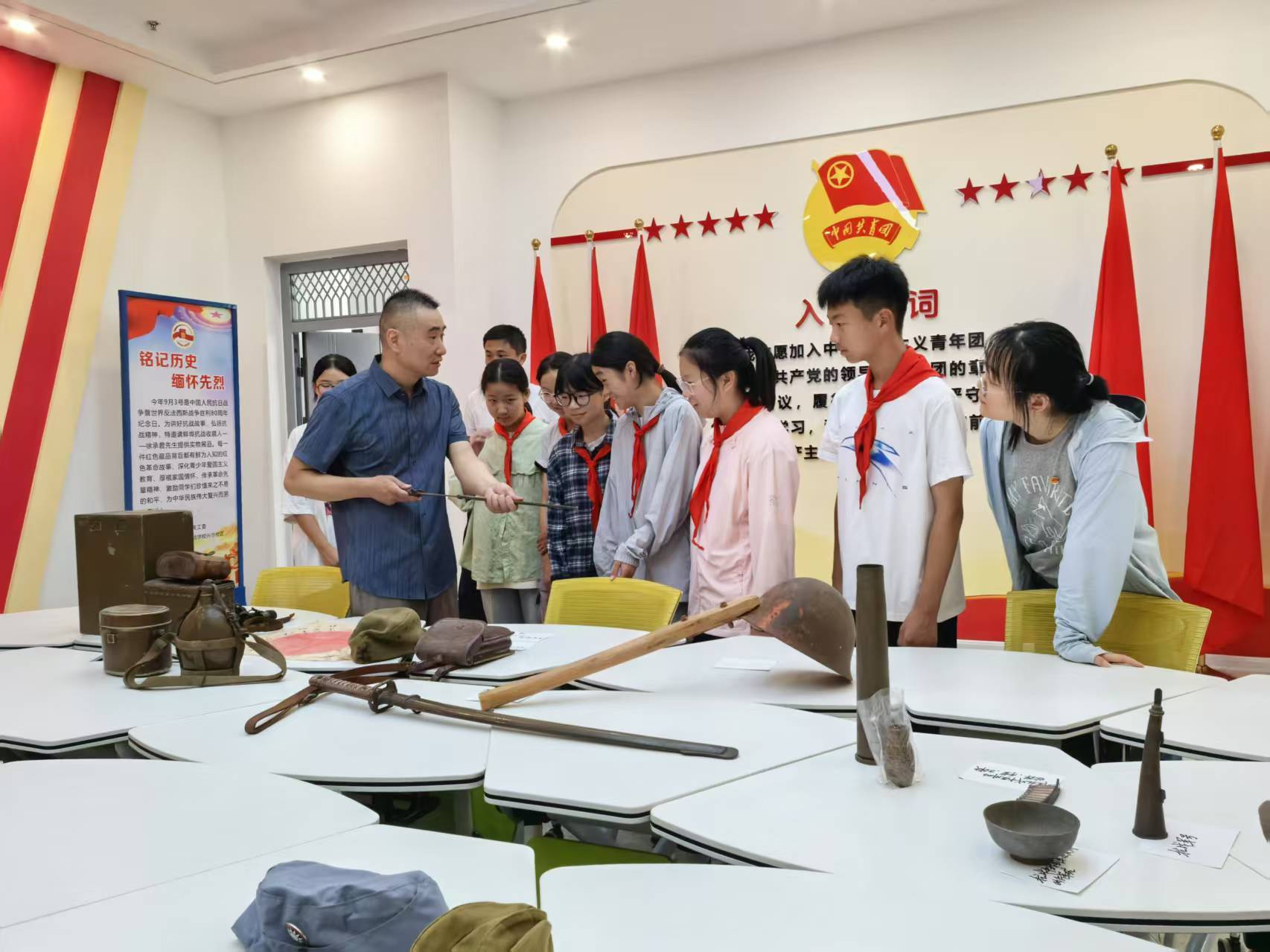 参观过程中,党团员教师不时驻足讨论,青年志愿者教师们则细心为学生讲解展品背后的故事,帮助青少年理解历史内涵。整个参观过程庄重有序,历史物件成为最生动的教材,让抗战精神可触可感。