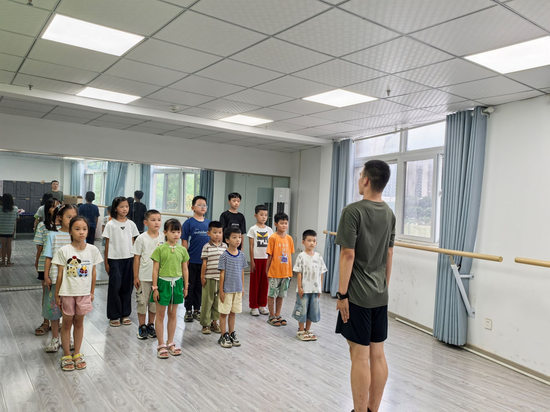 踢正步训练中,方同学分解动作要领,“踢腿要绷直,落地要有力”。孩子们跟着口令一步步练习,起初脚步踉跄,经过反复练习,逐渐找到了节奏感。蹲姿训练时,有的孩子腿麻了也坚持着,方同学及时给予鼓励:“好样的,这就是军人的毅力!”