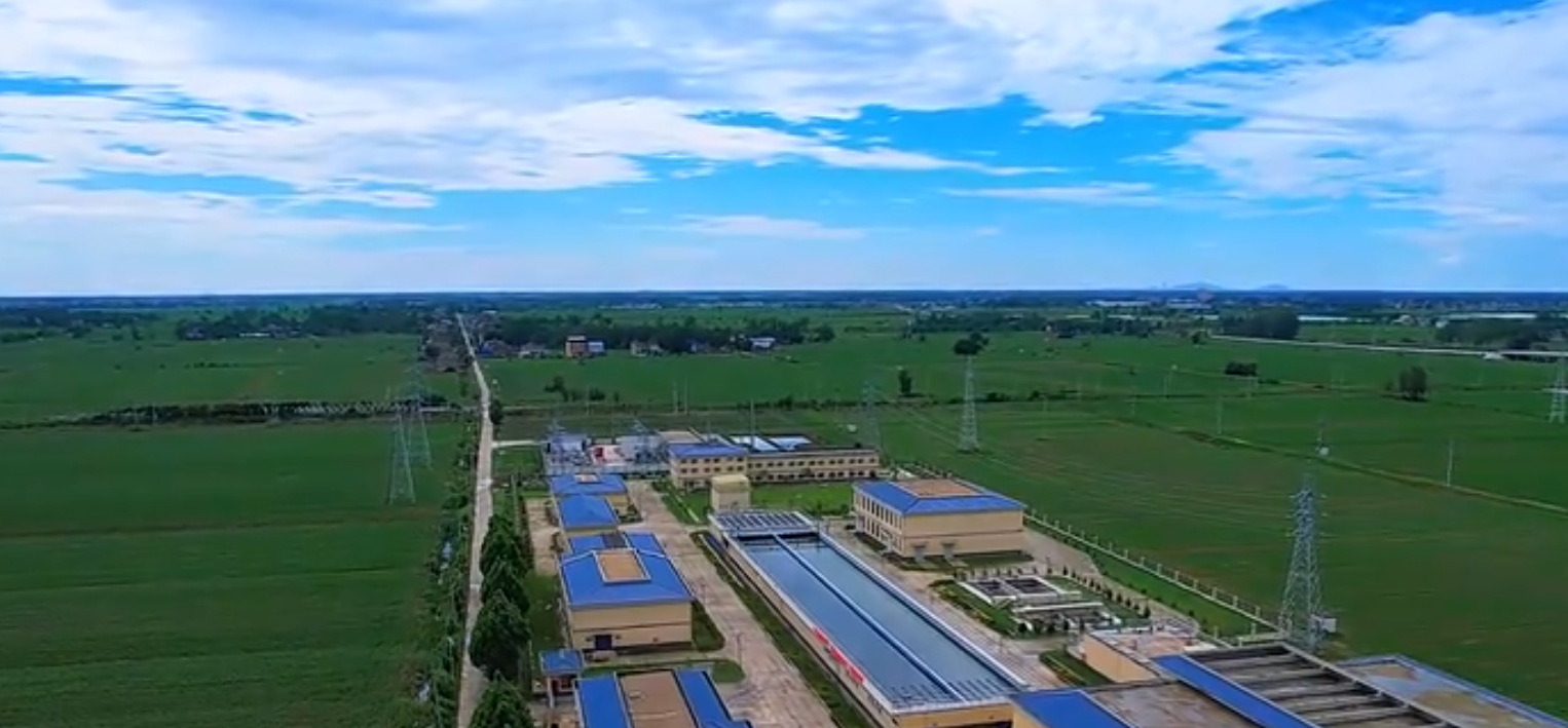风和日丽,安徽省蚌埠市城区在蓝天碧水白云的映衬下,宛如一幅宁静美丽的画卷,美不胜收。