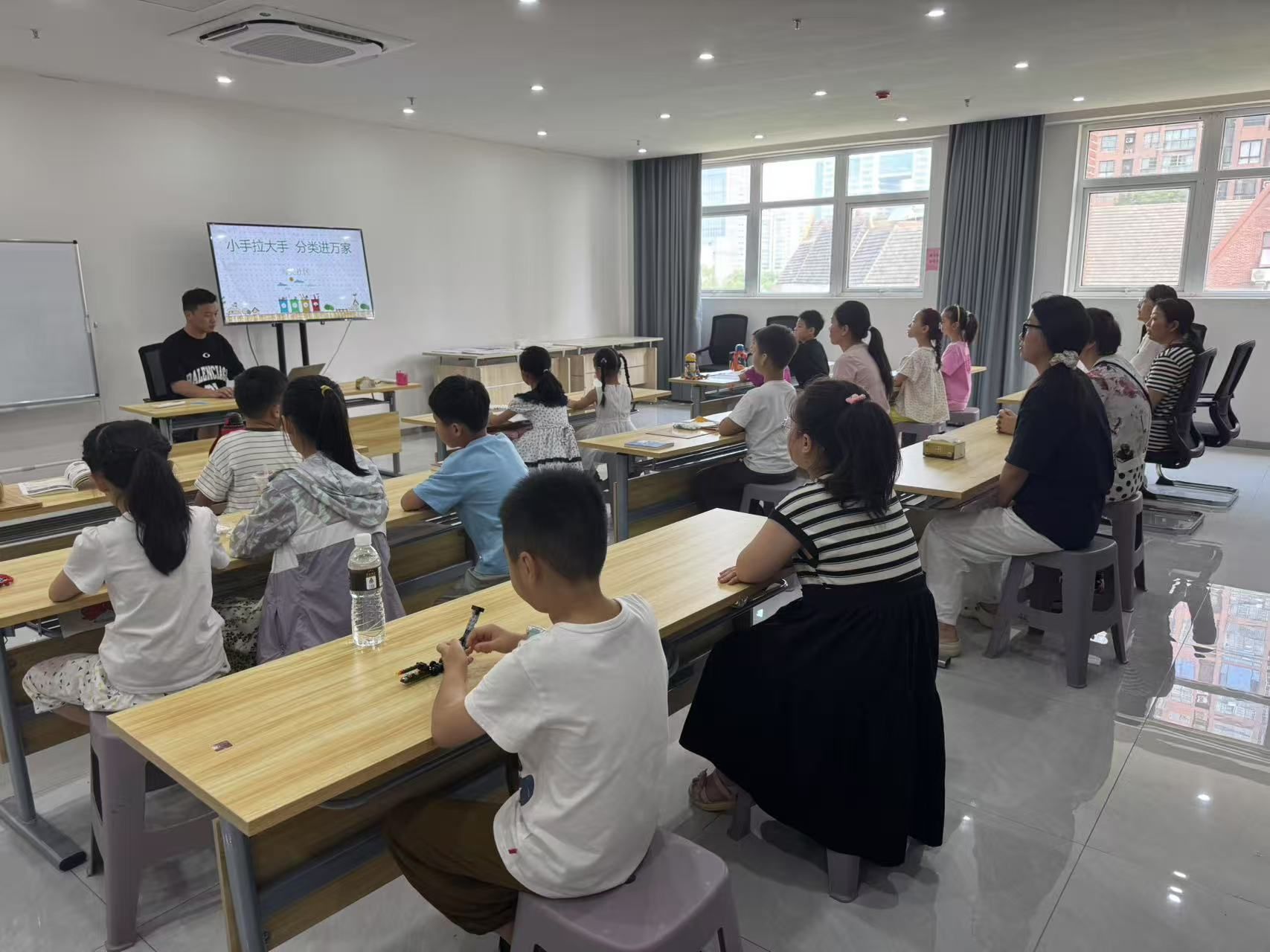 活动中,社区邀请环保志愿者担任讲师,在社区活动中心开设“垃圾分类小课堂”,通过PPT讲解、动画演示、实物展示等方式,向孩子们介绍垃圾分类的意义、分类标准(可回收物、厨余垃圾、有害垃圾、其他垃圾)及投放要求。课堂中穿插互动问答,如“矿泉水瓶属于哪类垃圾”“废旧电池该扔到哪个颜色的垃圾桶”,加深儿童对分类知识的记忆。此次活动通过趣味化、互动化的形式,引导儿童掌握垃圾分类知识,带动家庭参与社区环保行动,形成“教育一个孩子、影响一个家庭、带动整个社区”的良性循环。