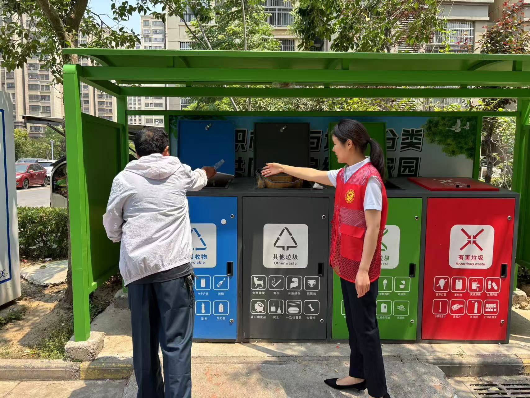 活动中,文明志愿者主动担当,化身垃圾分类的“双角色践行者”。在业务服务大厅,他们充分发挥窗口优势,将垃圾分类宣传融入日常工作,向前来办理业务的群众发放图文并茂的宣传资料,耐心讲解垃圾分类的基础知识、分类技巧以及环保意义,让办事群众在办理业务的同时,潜移默化地接受垃圾分类知识的熏陶。工作之余,职工们纷纷走出单位,走进社区,投身垃圾分类志愿服务一线。通过举办知识讲座、现场示范教学、趣味互动游戏等多样化形式,向社区居民普及垃圾分类的标准和方法,手把手指导居民进行正确分类投放,以实际行动带动身边更多人参与到垃圾分类行动中来。