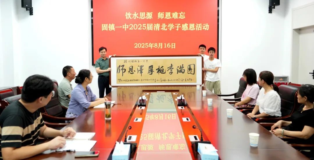 8月16日,固镇一中校园内洋溢着温煦而庄重的气息。已收到清华大学和北京大学录取通知书的2025届优秀毕业生耿闻俊和崔豪哲在家长的陪伴下重返母校,向三年来悉心培养他们的老师们献上感恩之礼。