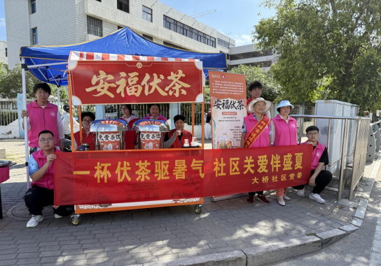 高温天气,大桥社区策划“清凉沁心 致敬坚守”活动。三伏天每日供应由夏枯草、佩兰等降暑草药配制的解暑伏茶;向环卫工人捐赠爱心伞,为其遮挡烈日风雨;为户外劳动者送去矿泉水、防晒帽等清凉物资,用实际行动传递对环卫工人、快递员等群体的尊重与关爱,带动社会关注“高温守护者”。