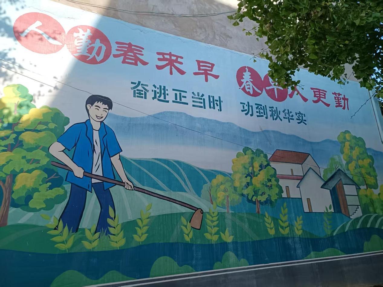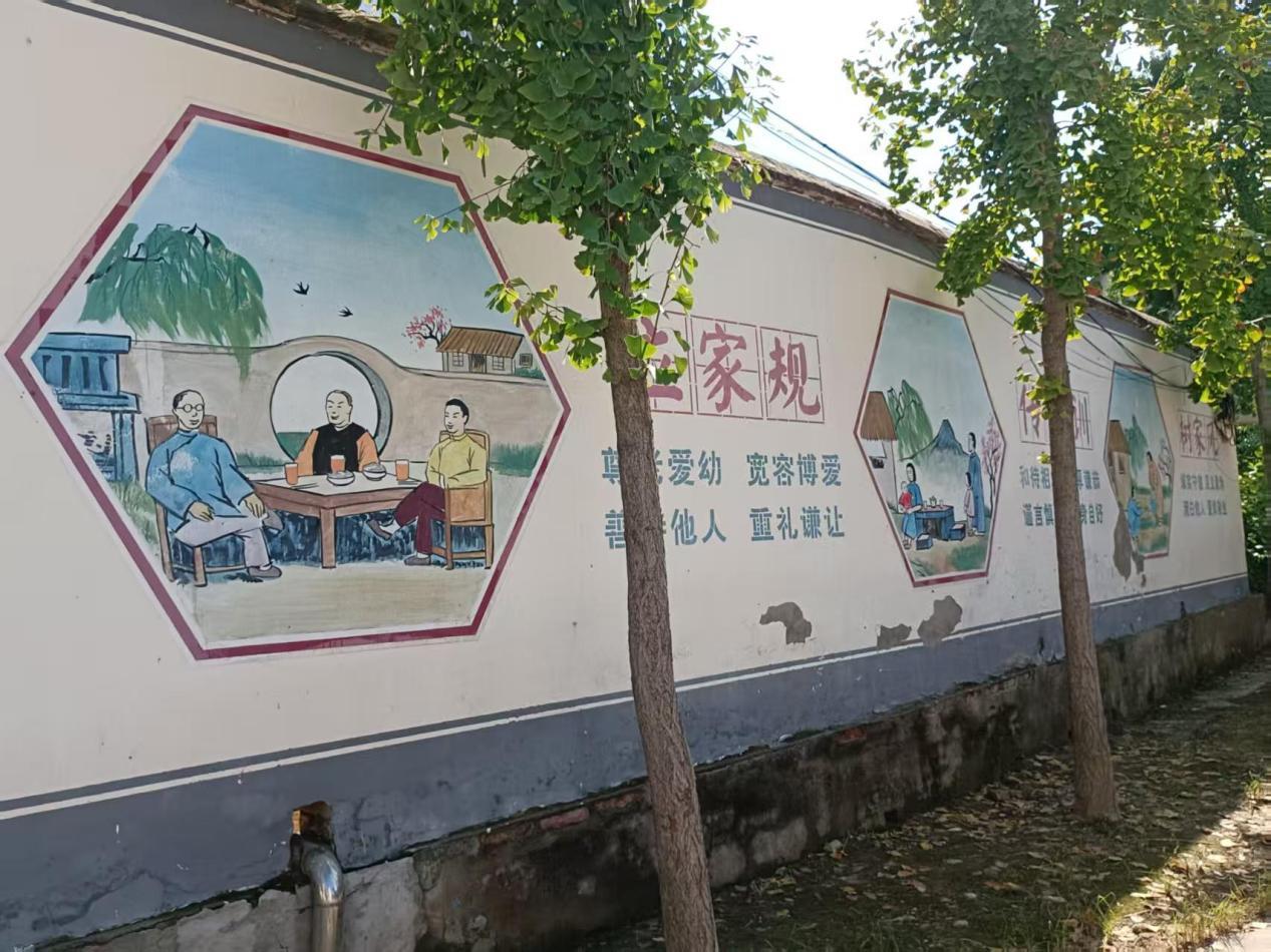 文明浸润,新风育人促提升。文化墙的价值远超视觉呈现,更是传播文明、涵养思想的阵地。在文明乡风主题区,“邻里互助”“移风易俗”的温馨画面随处可见;“村规民约”墙以通俗话语,揭示高价彩礼、人情攀比、铺张浪费等陋习负担,引导树立健康节约的新风尚。“百善孝为先”彰显传统美德。“美丽庭院”展现整洁、健康、和谐的乡村风貌,无声引导共建美好家园。“爱护环境”“关爱妇儿”等标语时刻提醒村民规范言行、提升素养。村民李大妈感慨:“过去只顾低头过日子,现在看墙上画,才明白文明生活多舒心,咱也要跟上脚步!”这些墙绘如同无声的老师,让文明理念在村民心中扎根。