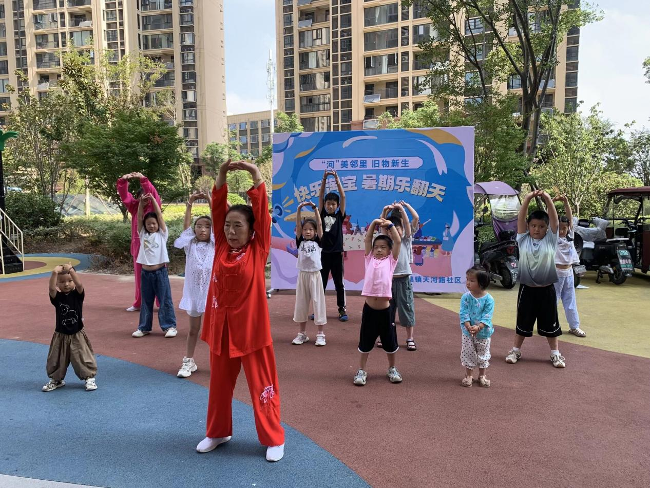 天河路社区以助力小“河”苗的全面发展为目标,积极整合辖区资源,组织志愿者、“五老”宣讲团成员、大学生兼任基层团组织副书记,开展范围涵盖了文化熏陶、音体美发展、亲子互动等多维活动。“一起唱红歌”传承红色基因;“小脚踩大脚”加强亲子互动;“清凉水仗”释放夏日活力,来自辖区的各个志愿力量,共同呵护小“河”苗们的全面发展。丰富的项目激发孩子们的创造力、想象力和动手能力,更在集体活动中悄然培育文明、友善的社会主义核心价值观,为孩子们的成长描绘缤纷底色。