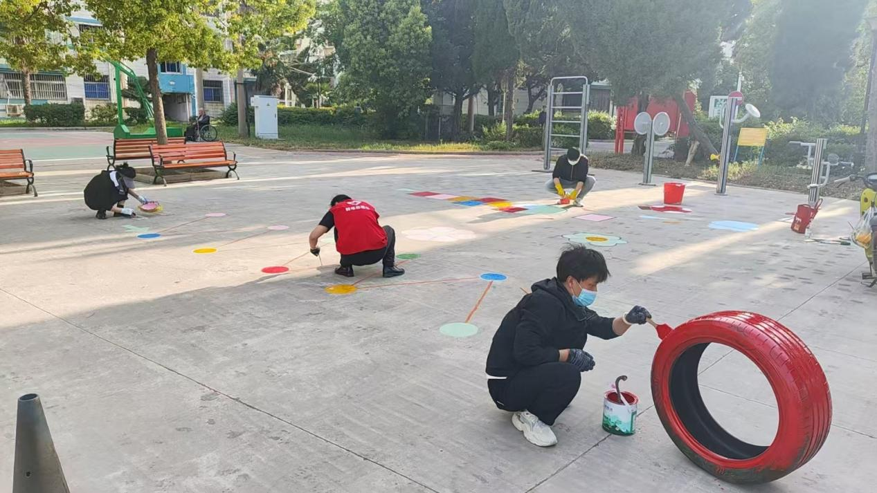 为打造干净整洁、文明有序的宜居环境,山南新村社区常态化组织志愿者开展楼道杂物清理、绿化带修剪等环境整治工作,确保公共区域干净整洁。在41所小区开展的居民共绘涂鸦活动中,党员与志愿者们带着颜料画笔齐上阵,有人勾勒灵动轮廓,有人为废旧轮胎披上彩衣,在大家的共同努力下,原本单调的健身步道变得五彩斑斓,成为社区里一道跃动着生活气息的风景线,让家园颜值与日俱增。