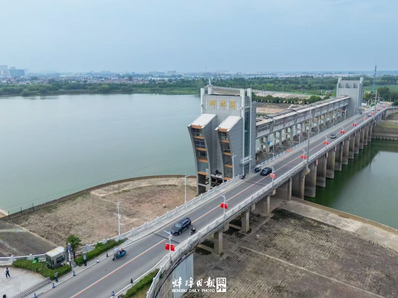 8月25日下午,2025年“千里淮河今安澜·行走淮河”网络主题宣传活动采访团一行来到蚌埠闸和蚌埠淮河船闸有限公司采访。(尤靖文)