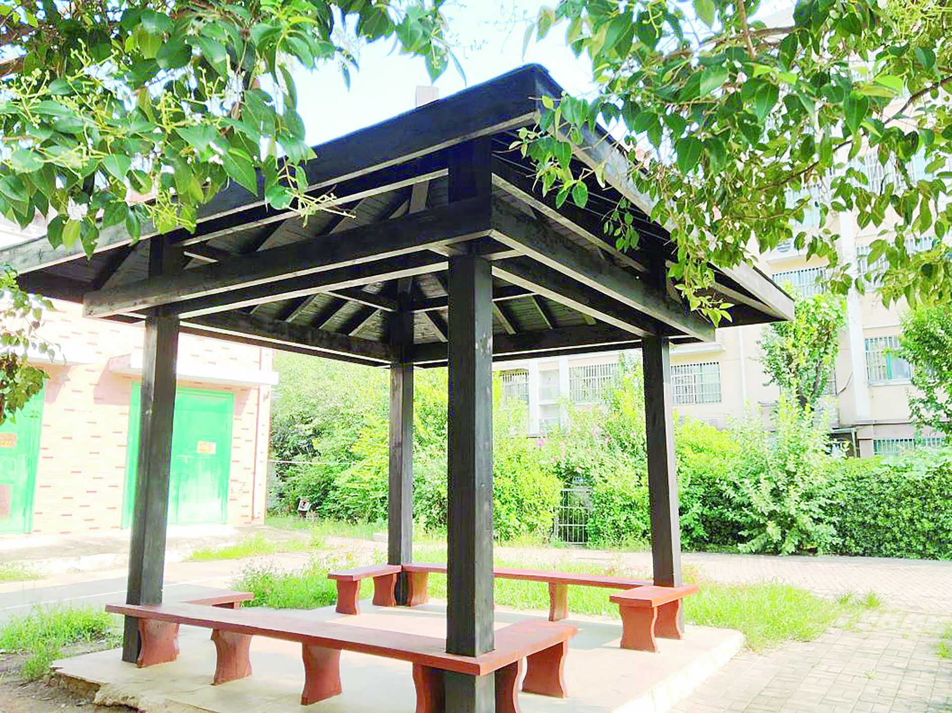 维修后的凉亭焕然一新,成为小区里一道亮丽的风景线。