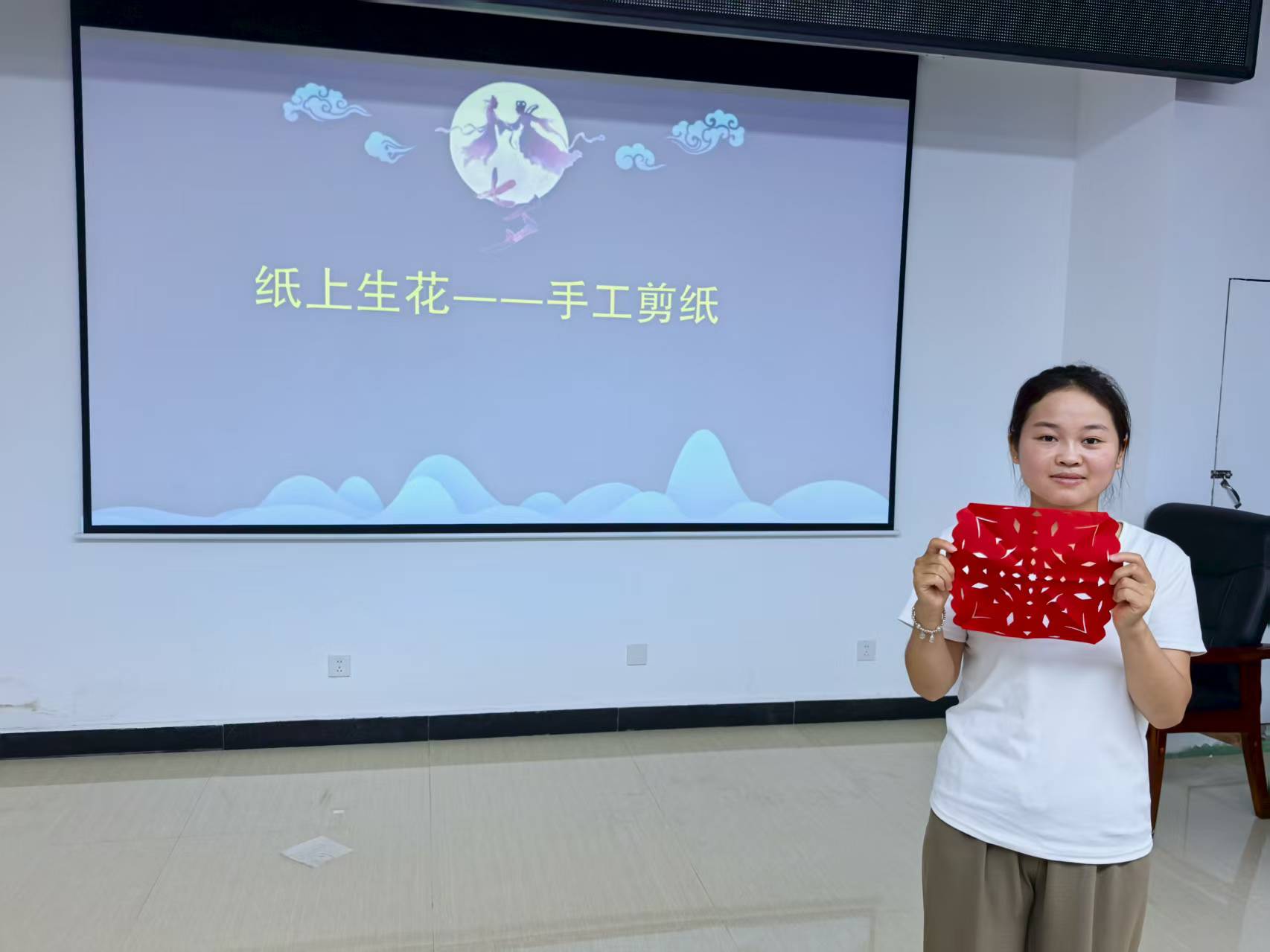 剪纸环节同样精彩纷呈。活动中,榴城镇新时代文明实践所志愿者向大家传授剪纸技艺。耐心地讲解剪纸的基本方法和技巧,从纸张的折叠到剪刀的运用,都进行了细致的示范。大家纷纷拿起剪刀和彩纸,小心翼翼地开始创作。不一会儿,一幅幅充满创意和节日氛围的剪纸作品便诞生了,每一幅都展现出了大家对七夕文化的独特理解。
