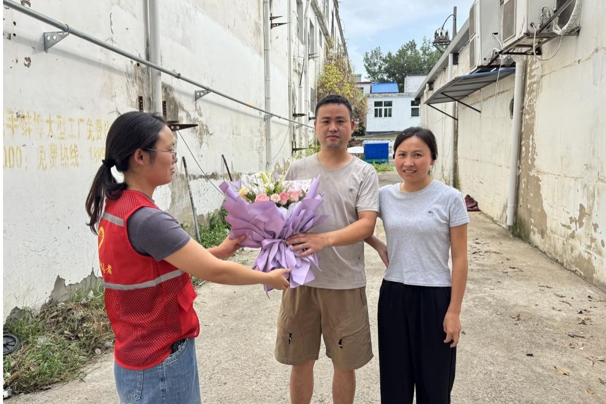 插花活动结束后,志愿者们带着在活动中精心制作的部分插花作品以及专门准备的象征幸福与美满的鲜花花束,走访了辖区的新婚夫妇,为他们送上真挚的节日祝福。收到这份意外而特别的七夕节礼物,新婚夫妇们在接过鲜花时,脸上洋溢着幸福的笑容,纷纷表示感谢。
