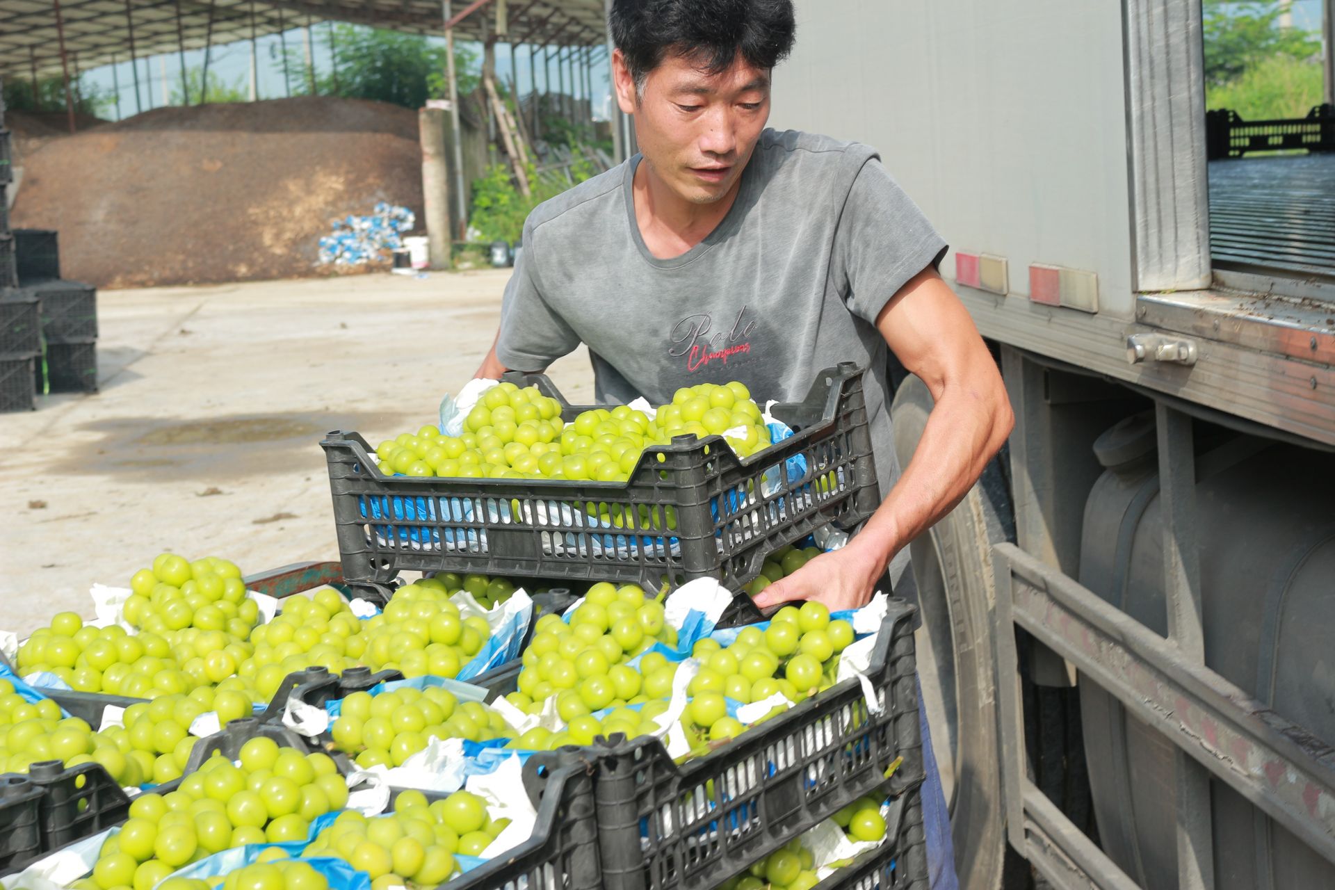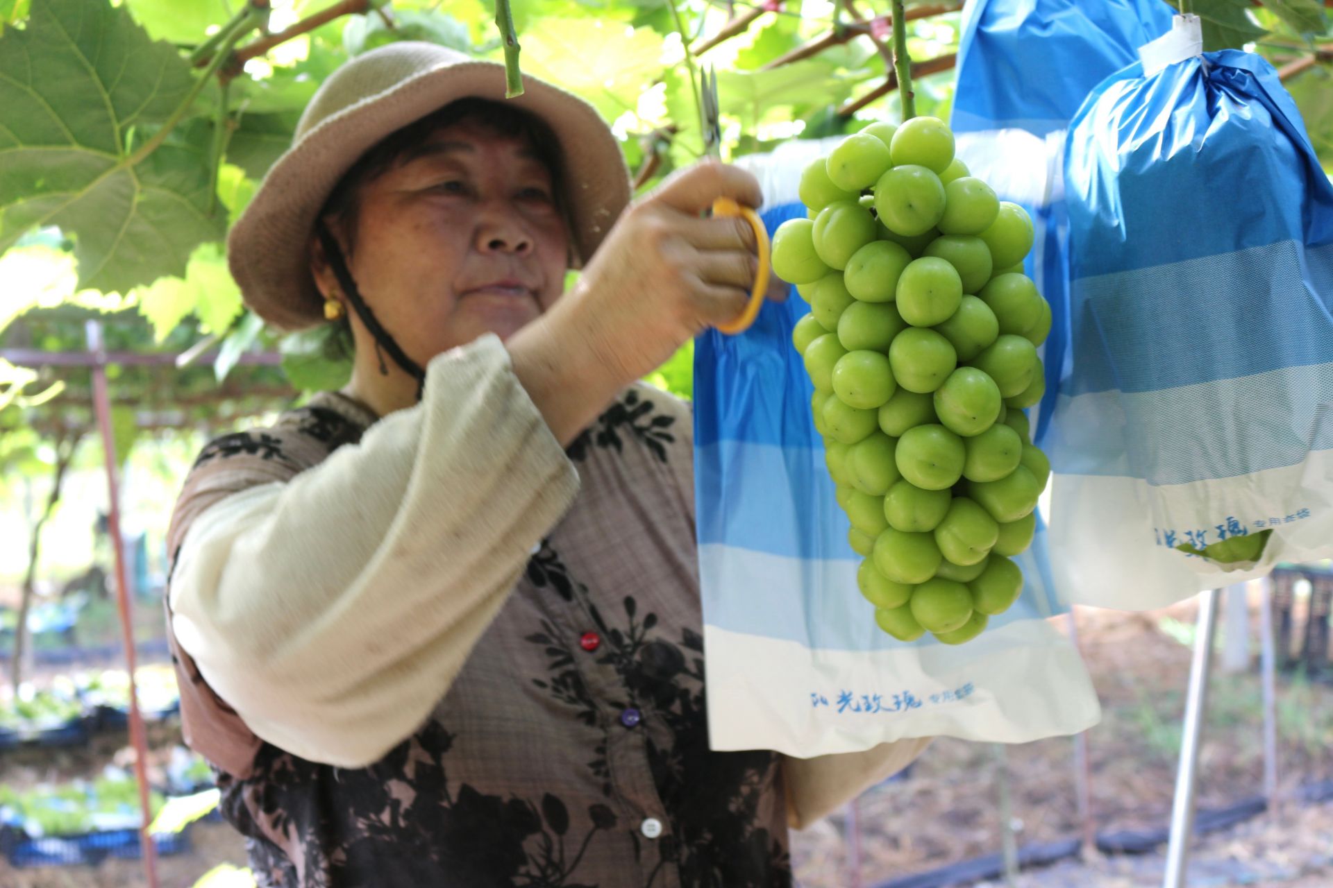 “我今年种了有50多亩葡萄,其中以巨峰为主,如今阳光玫瑰也开始下市了,虽然价格上不去,但是今年的产量非常不错,亩产可达6000斤左右,总体上说,今年效益还是不错的。”五河县新集镇吉安家庭农场负责人陈圣井称赞道。