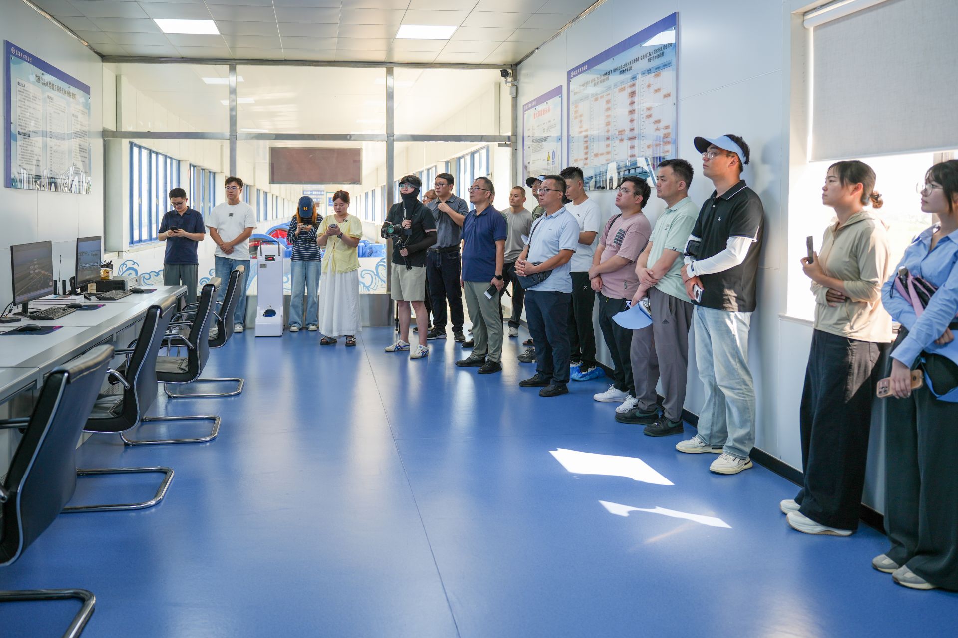 8月28日上午,2025年“千里淮河今安澜·行走淮河”网络主题宣传活动采访团一行来到六安市霍邱县临淮岗洪水控制工程采访。(尤靖文)