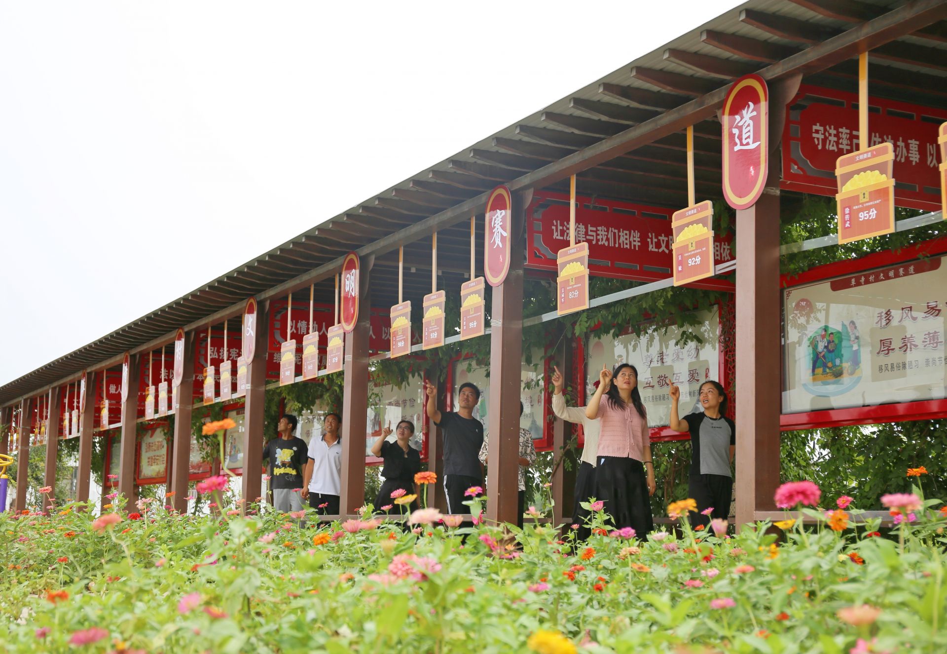 村民在“文明赛道”走廊里查看“文明储蓄罐”分数