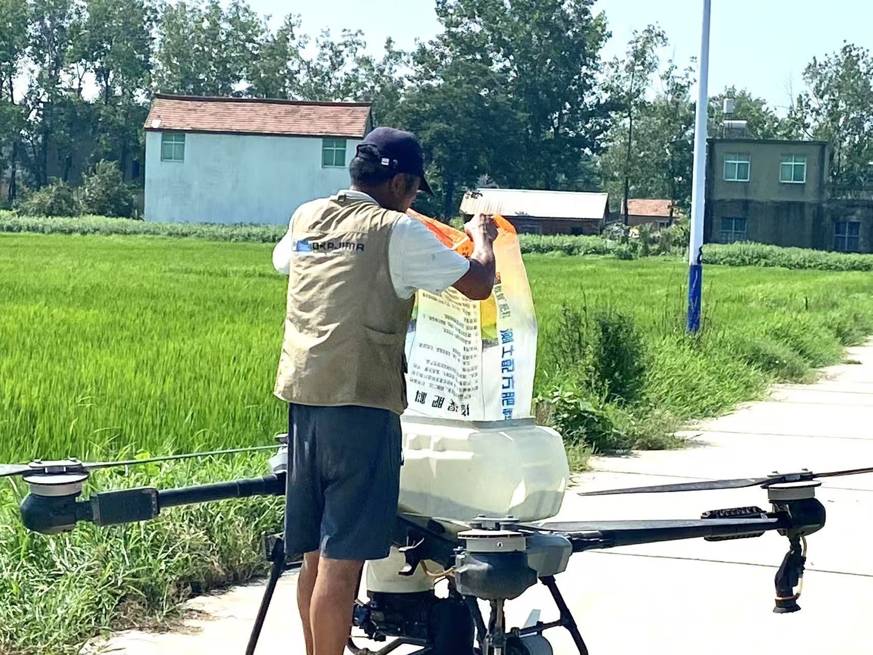 八月,骄阳似火,正是水稻生长的关键时期。在蚌埠市五河县新集镇的3.4万亩的稻田里,一片繁忙而又充满科技感的景象映入眼帘,植保无人机成为了田间的施肥“小能手”,为水稻的茁壮成长保驾护航。