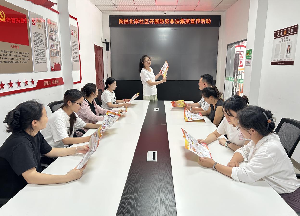 下午3时,社区活动室变身为“防非知识课堂”,现场设置咨询服务区与资料发放区。宣传展板以漫画形式呈现非法集资的“常见套路”“识别技巧”;咨询台前,工作人员针对居民提出的“如何查投资平台是否正规”“养老钱怎么存更安全”等问题,结合政策法规与真实案例逐一解答;志愿者则向到场居民发放宣传折页,重点标注“非法集资三大特征”等关键信息,让居民在轻松交流中掌握防非干货,现场互动热烈,累计解答疑问15条。
