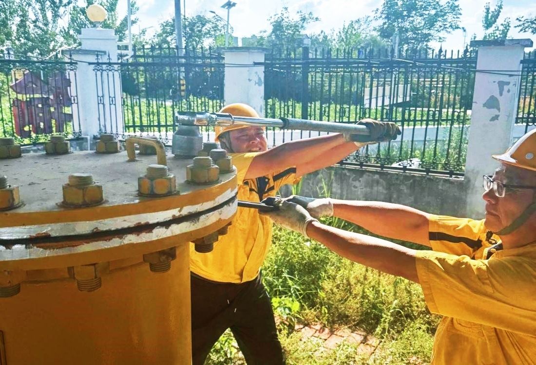 10:00,为保障市政燃气管网平稳运行,蚌埠新奥燃气有限公司运营保障群抢维队在比亚迪南侧次高压调压站开展一级维护,完成压力测试、过滤器排污等项目。炎炎烈日下,大家挥汗如雨却操作精准,以专业能力保障设备长期平稳运行。