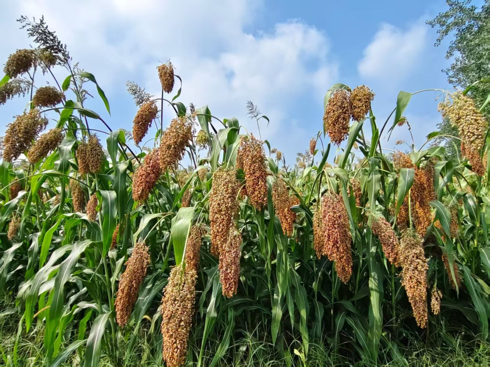 在种植大户武卫军的高粱基地里,沉甸甸的高粱穗压弯了枝头,在阳光下闪烁着饱满的光泽,一派丰收在望的喜人景象。武卫军介绍,这片火红的高粱地不仅是风景,更是实实在在的“钱景”。