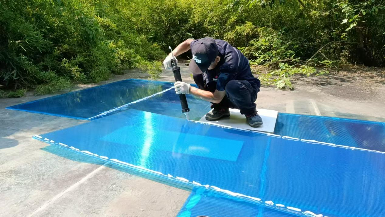 物资到位后,维修工作紧锣密鼓地展开。物业工作人员分工明确,首先清理破损的玻璃碎片和残留材料,接着仔细测量破损玻璃的尺寸,为更换适配的挡板做准备。他们小心翼翼地拆卸破损玻璃,清除残留的胶水和密封剂,然后将新棚顶精准安装到顶棚结构中,并反复检查确保其牢固稳定。