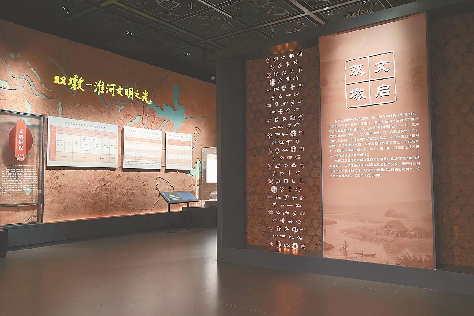 不久前,提升改造后的双墩遗址博物馆全新亮相,空间布局更科学,流线更清晰。集中展示的陶器刻划符号、石制及骨制的早期渔猎工具等文物,通过精心展陈方式,将7300年前淮河先民们采集、渔猎、制陶、生活的场景“搬”到观众眼前。
