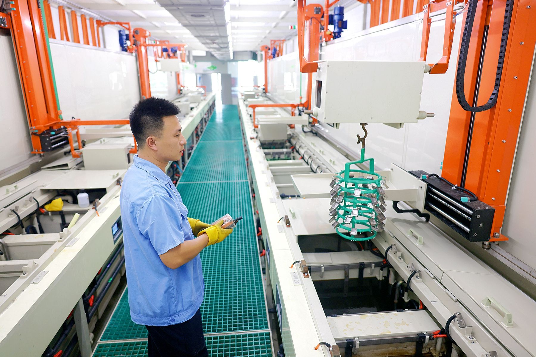 9月10日,安徽北方华鑫智感科技有限公司生产车间,工作人员正在进行生产前调试。