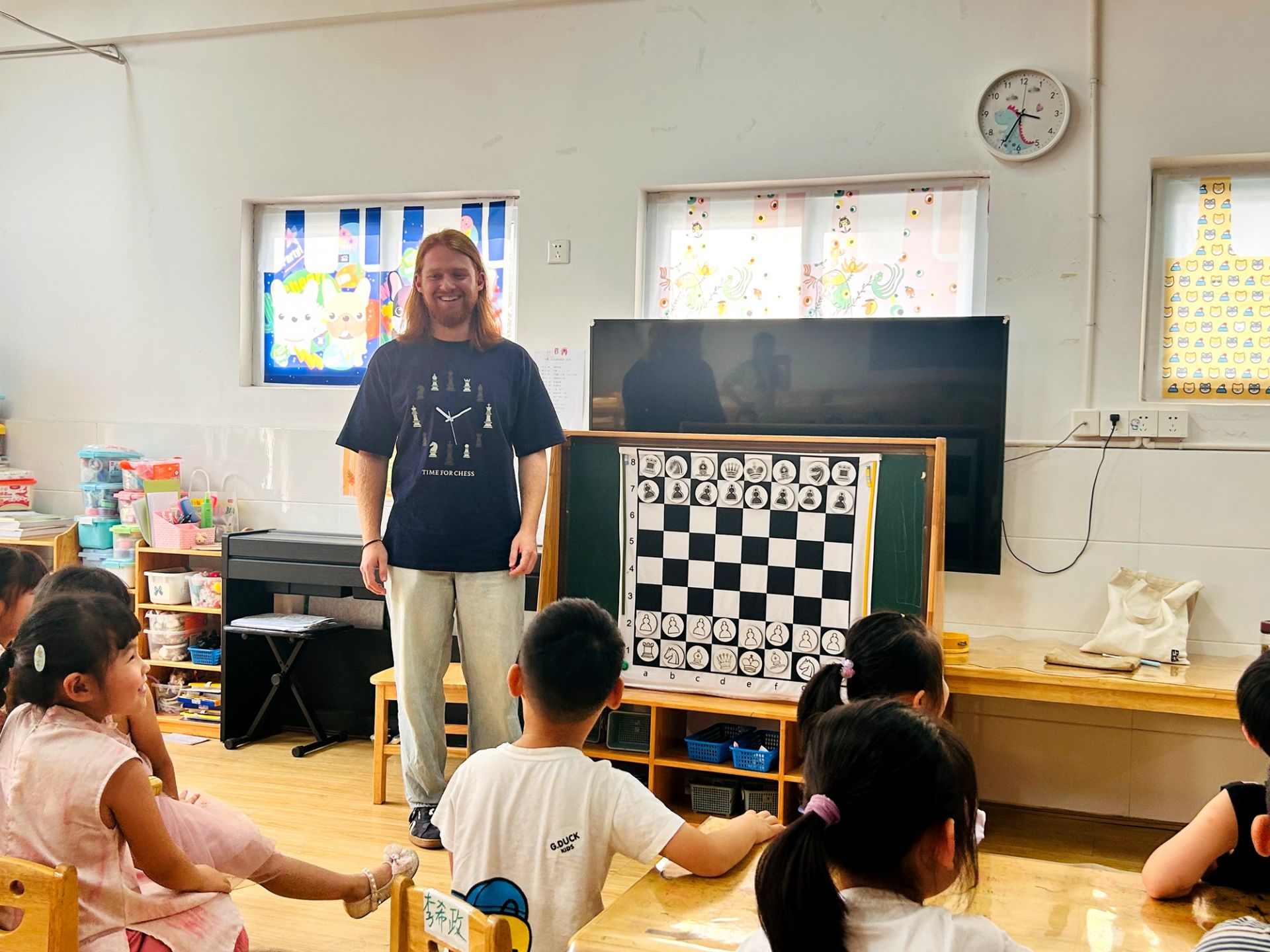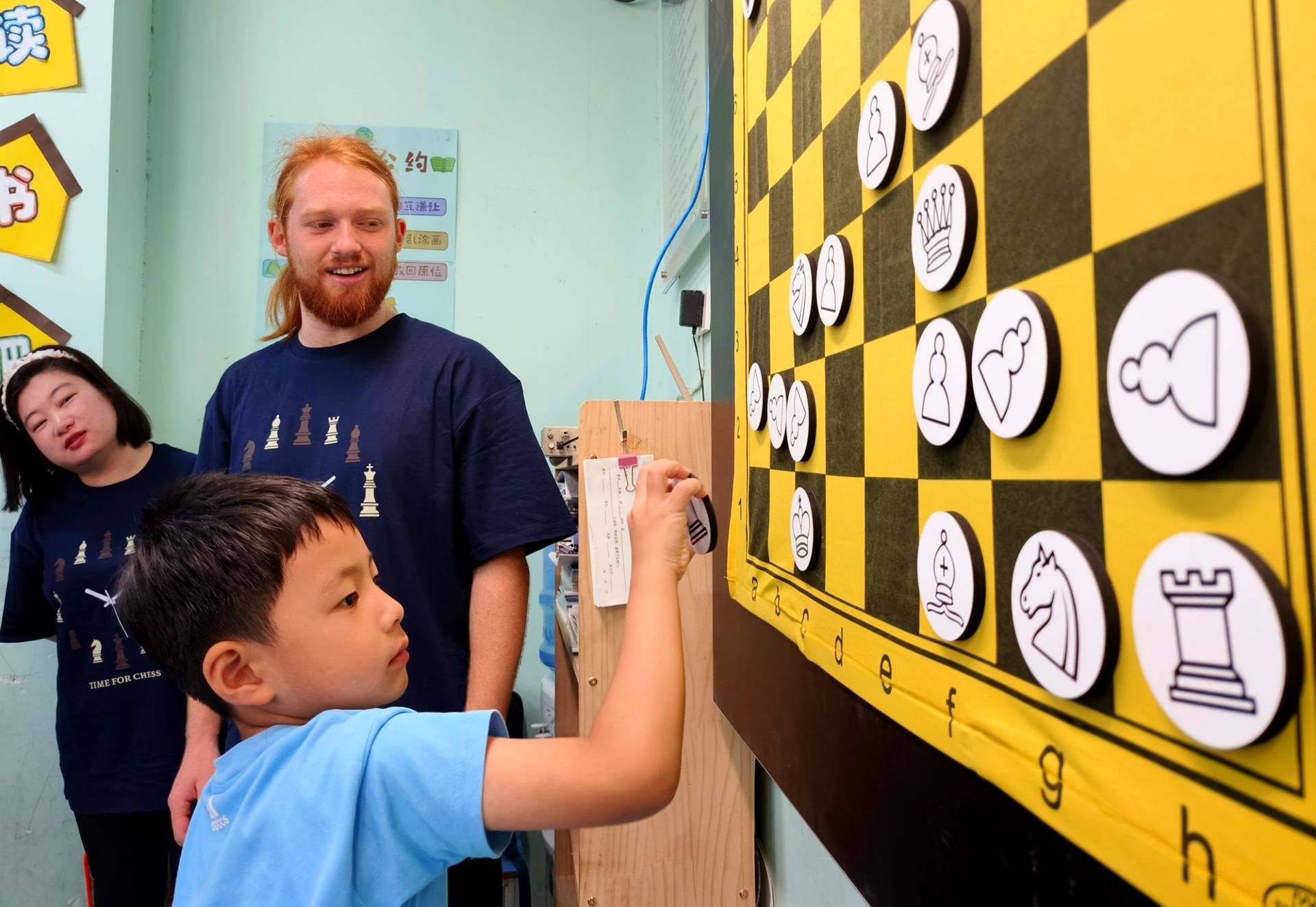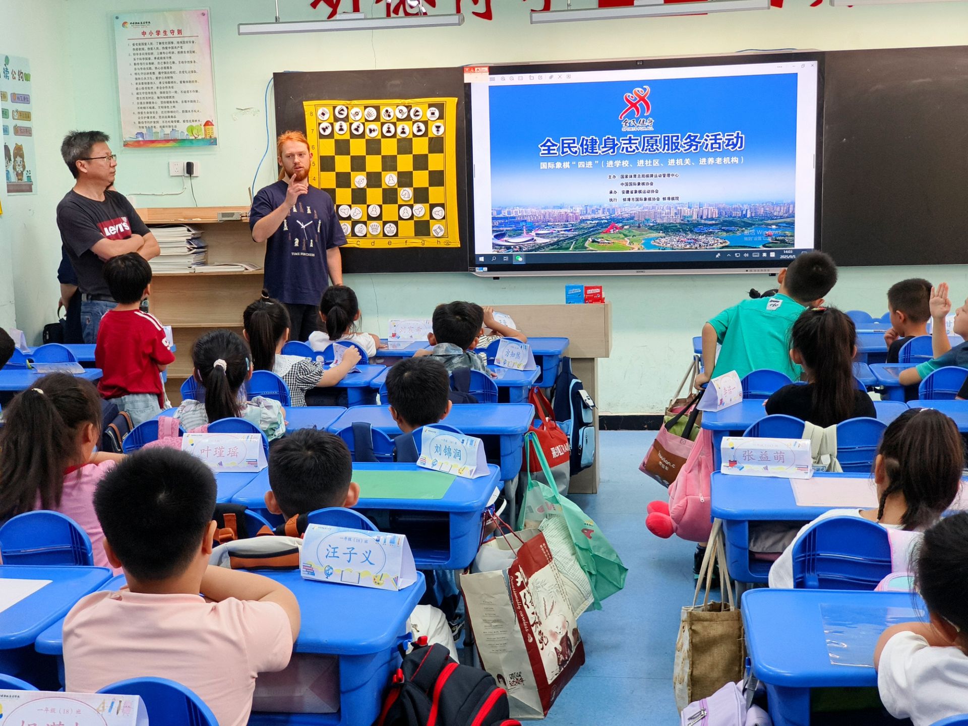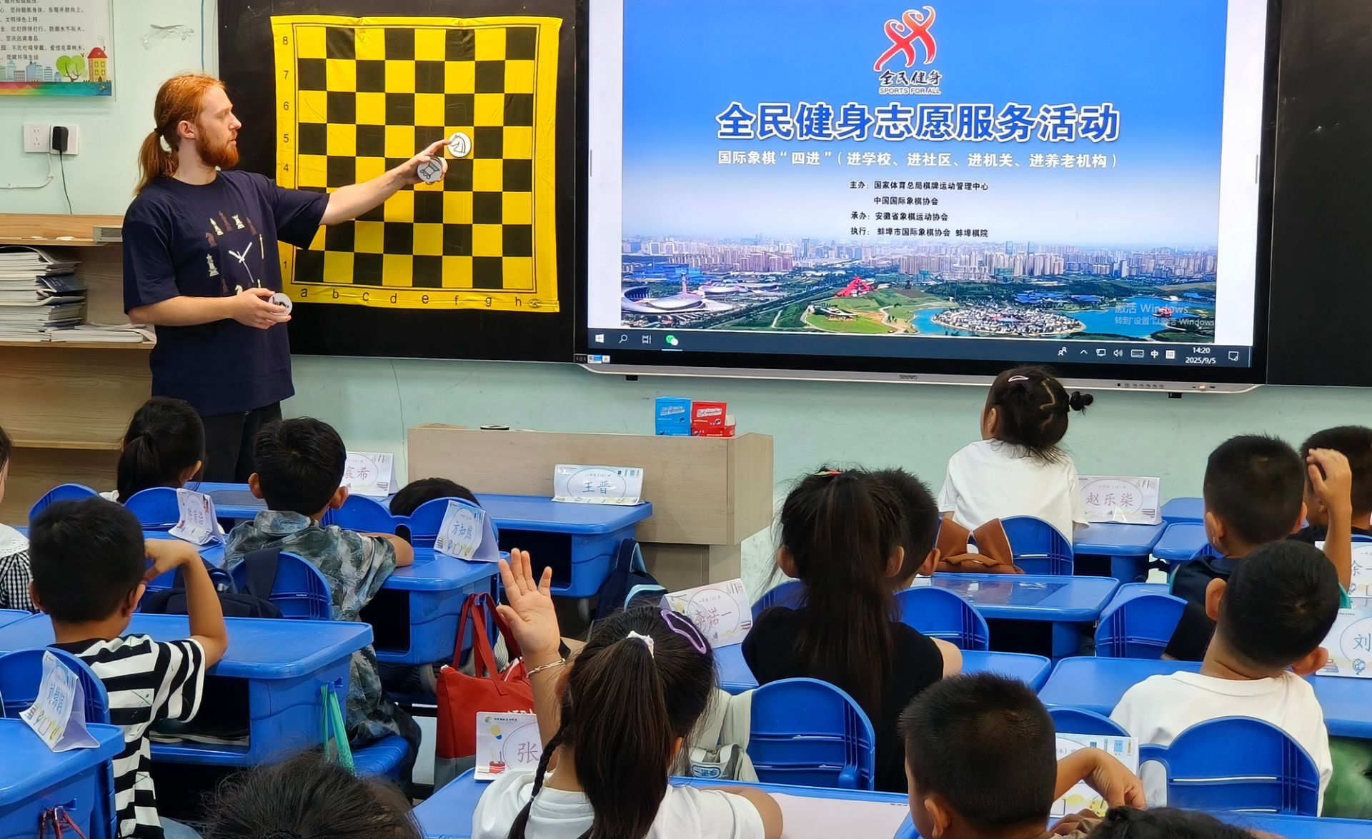 近日,德国国际象棋志愿者、波恩大学物理学硕士研究生路易斯循着全民健身志愿服务活动暨全国国际象棋“四进”(进学校、进社区、进机关、进养老机构)活动脚步,先后走进蚌埠新城实验学校和张公山第一幼儿园,将跨国棋艺交流的暖意送进校园。路易斯则以趣味棋局为切入点,用严谨又不失活泼的讲解,让大家感受到国际象棋的逻辑魅力。路易斯用专业与热情赢得师生、家长的一致欢迎。 (吴媛媛)