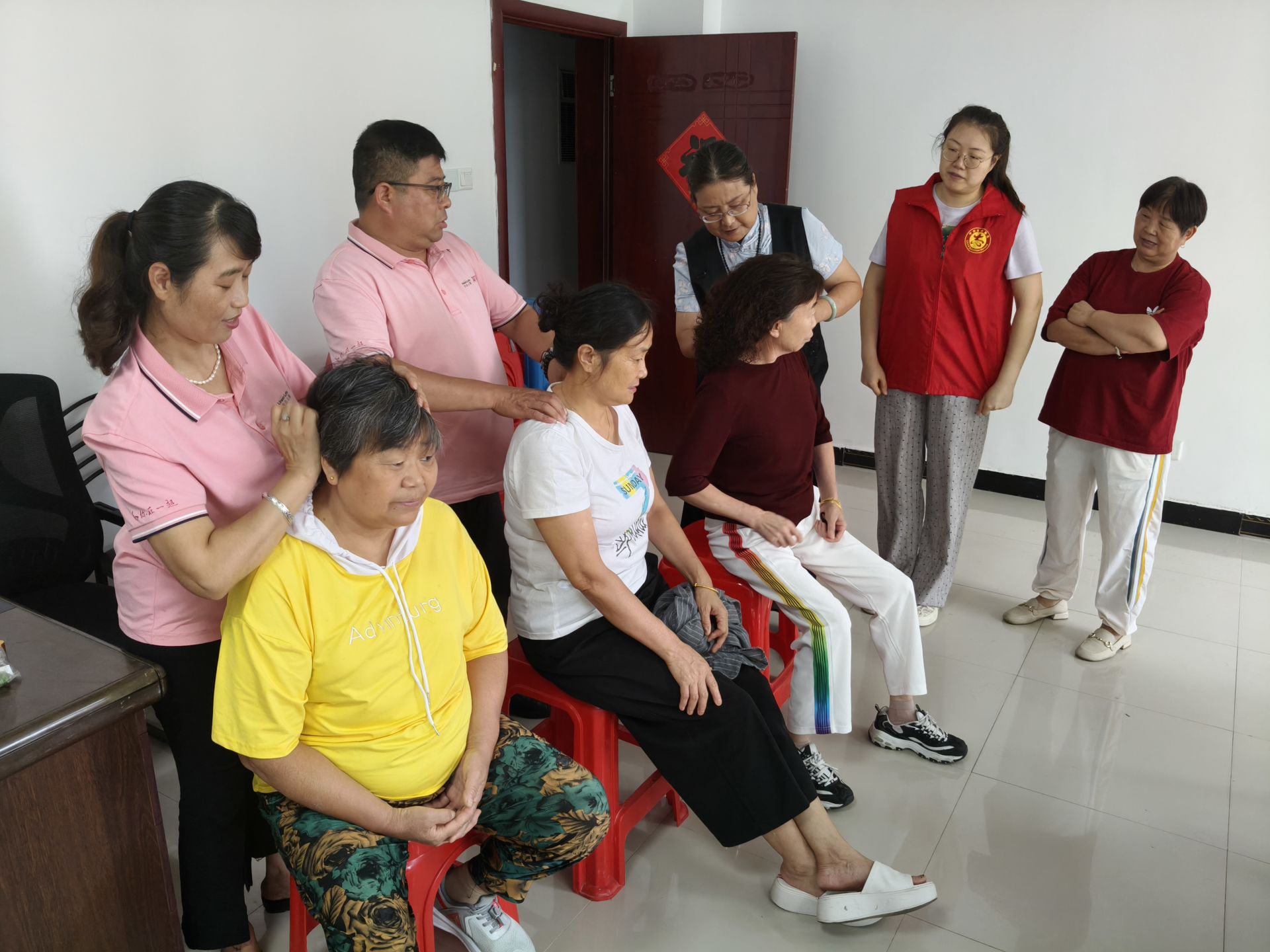 随后,按摩老师通过专业的手法为居民缓解肩颈不适、腰背疼痛等困扰,在按、揉、推、捏、拍的过程中,向大家传授简单的推拿技巧和健康养生小知识。