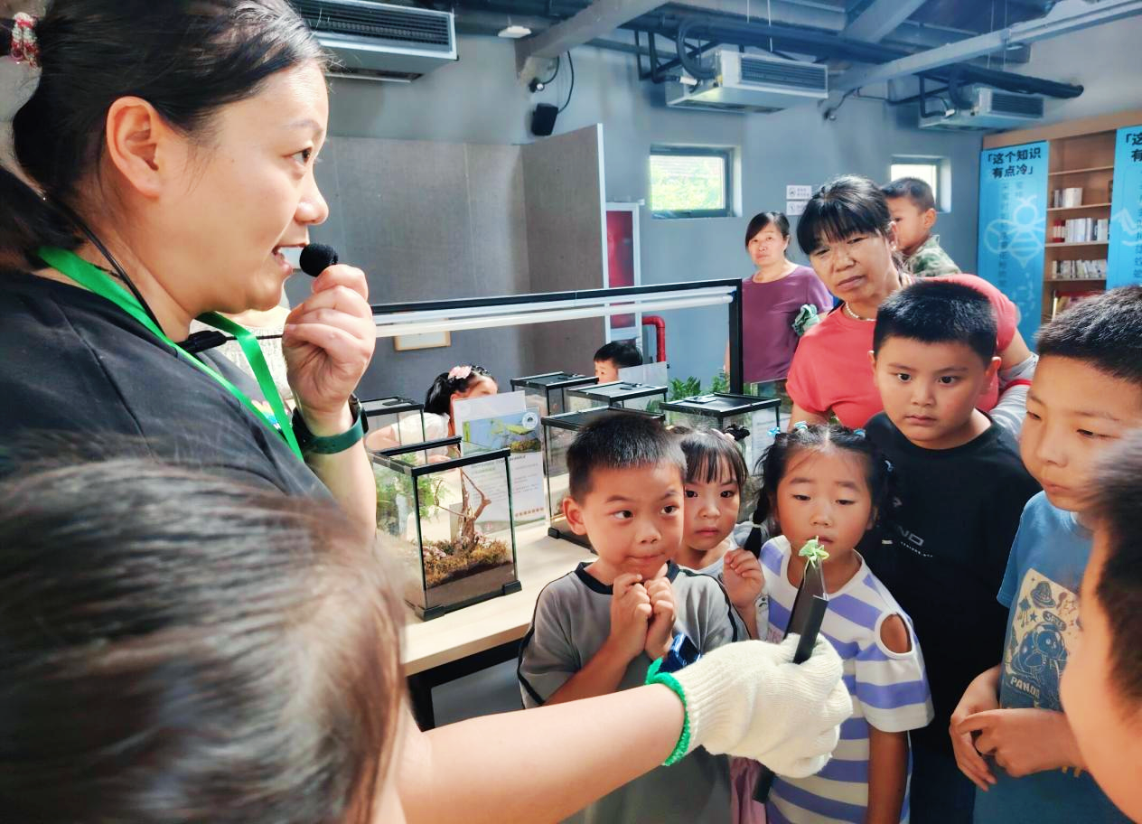 蚌埠昆虫博物馆的“活体昆虫观察区”有几个透明生态缸,缸前围满了辖区研学的孩子们,讲解员为了让孩子们更清楚直观地观察,拿起了螳螂趴着的亚克力板。围在周围的孩子瞬间安静下来,有的踮着脚尖,有的双手托腮,眼睛都死死地盯着这个绿色的小生灵。这堂“走出生态缸”的螳螂观察课,没有隔着玻璃的距离感,只有真实的互动与发现,让孩子们对自然的好奇与热爱,在与虫豸的近距离接触中,悄悄扎下了根。