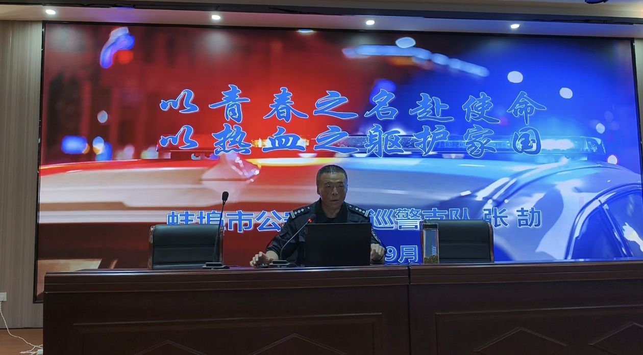 9月17日,时代楷模、中国好人、蚌埠市公安局特警支队支队长张劼走进蚌埠一中,为师生们带来了一场题为“以青春之名赴使命 以热血之躯护家国”的宣讲。