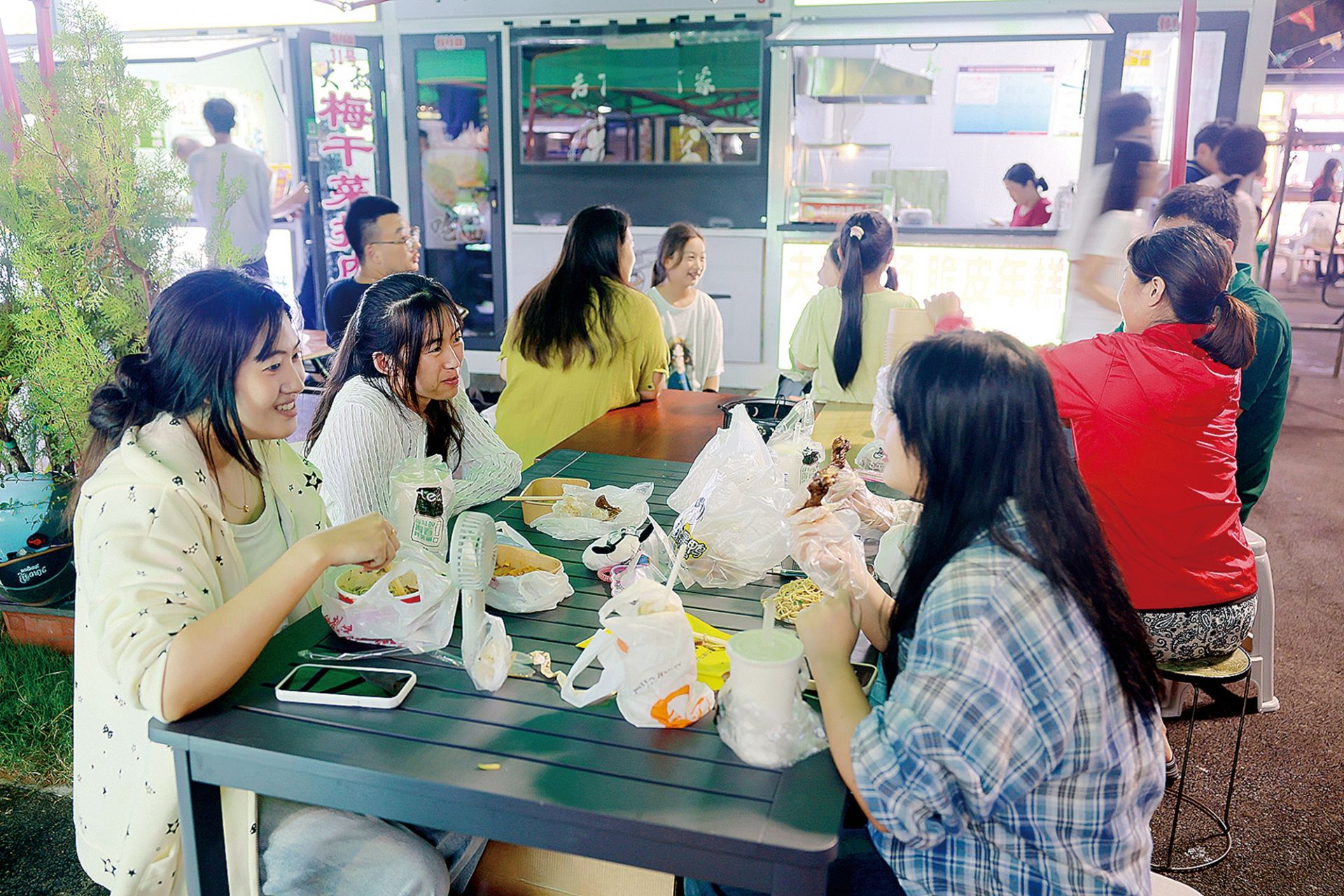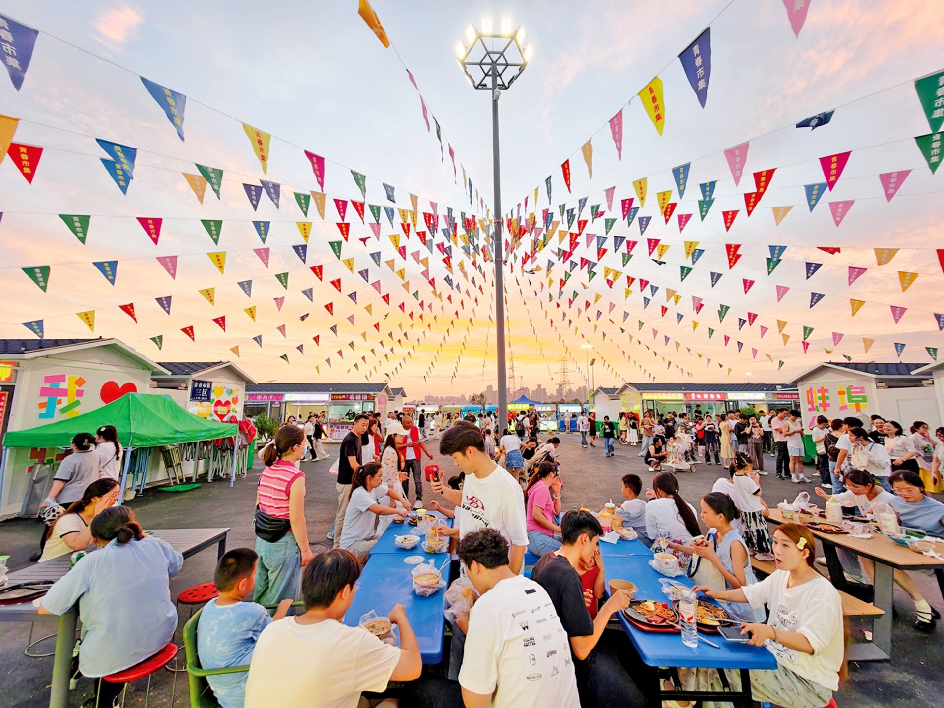 9月1日,安徽省蚌埠市龙子湖生态文旅街区核心项目——位于曹山路安徽财经大学西门对面的“青春市集”正式开市,成为蚌埠市乃至周边地区关注的焦点。这不仅是一个集美食、文化、休闲于一体的综合性市集,更是蚌埠推动城市更新、激发市场活力、提升城市功能品质的重要举措。青春市集以鲜明的“多巴胺配色”视觉风格和浓郁的地域文化元素,迅速吸引了市民和年轻群体的目光。市集内汇聚了烧饼夹里脊、冰酒酿等蚌埠本地美食,也引入了热干面、麻辣香锅等多地风味,满足市民多元味蕾需求。同时,便民设施、公益活动和绿色休闲空间的规划,体现了青春市集服务民生、贴近青年的定位。它不仅是餐饮集聚区,更将成为大学生社团活动、非遗展示、艺术创作等多功能交融的公共空间,进一步激活城市文化生态。龙子湖是蚌埠的宝贵资源、城市的“白菜心”。未来,青春市集有望成为蚌埠城市形象的新名片和青年社交的新高地。其成功运营,也将为蚌埠推进城市更新、促进消费升级、增强城市吸引力提供可复制、可推广的经验。我们期待,这里能成为“青春的舞台、市民的客厅、城市的窗口”,让蚌埠的青春气息与城市活力在此交汇、绽放。9月12日晚,“超级皖”美食争霸赛蚌埠市城市战队选拔赛在蚌埠青春市集举行。
