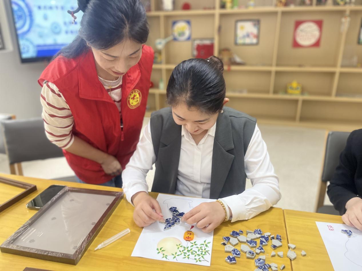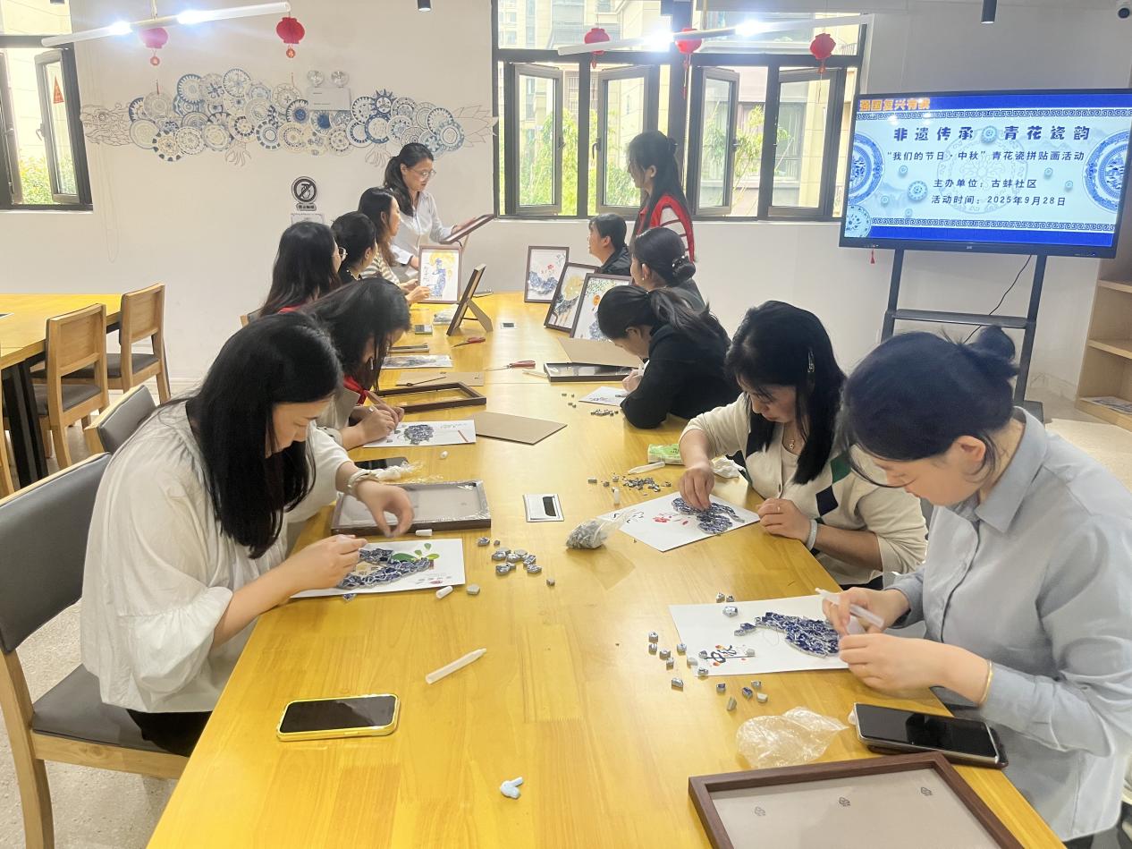 中秋佳节将至,为弘扬中华优秀传统文化,丰富居民精神文化生活,9月28日,蚌埠市淮上区淮滨街道古蚌社区举办“我们的节日·中秋”青花瓷拼贴画手工体验活动。活动吸引了党建共建单位代表、辖区居民及统战对象踊跃参与,大家在蓝白相间的清雅瓷韵中,共同感受非遗魅力,提前度过了一个文化意蕴深厚的中秋佳节。
