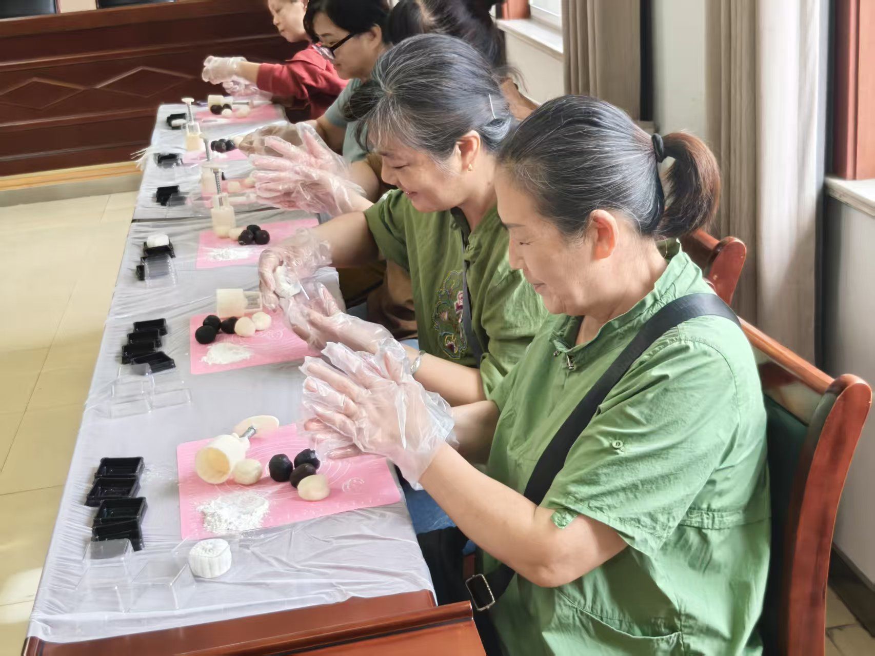 “揉面团、放馅料、压花形……”9月29号,龙子湖区治淮街道文化活动室内一派热闹景象,一场中秋DIY月饼活动在此举行,移交社区退休人员们欢聚一堂,在动手制作传统美食中感受节日氛围,拉近邻里情谊。