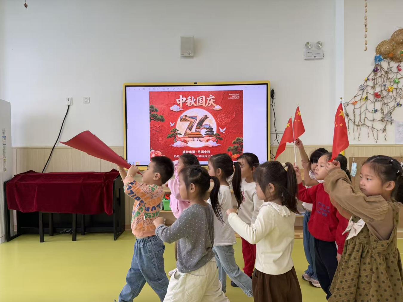 当国庆“红”遇上中秋“月”,活动进入了更具传统韵味的环节。老师们通过中国传统故事《嫦娥奔月》、儿歌《爷爷为我打月饼》等,向孩子们介绍了中秋节的习俗,让他们了解赏月、吃月饼、提灯笼的文化内涵。