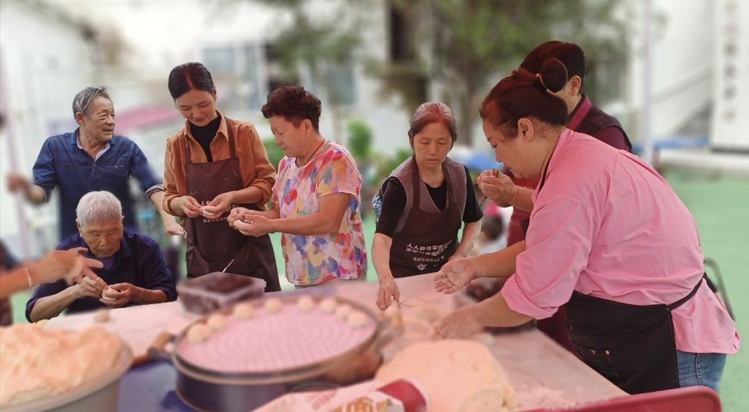 最让村民津津乐道的当数包糖饼环节。10多名村民围坐在一起,在工作人员的指导下,从揉面、拌芝麻馅到按压成型,每一步都做得认真细致。不一会儿,阵阵香气飘满广场。大家拿着自己做的糖饼,第一时间递给来参加活动的低保户、高龄老人、环卫工人,他们互相品尝、分享心得、笑意盈盈。小朋友们更是拿着糖饼笑得合不拢嘴。“自己做的糖饼就是香,还能和邻居一起热闹,这节过得太有意义了!”村民王阿姨笑着说。这一环节不仅让村民体验了传统美食的制作过程,更用“舌尖上的甜蜜”串联起邻里情,让团圆有了更真切的滋味。