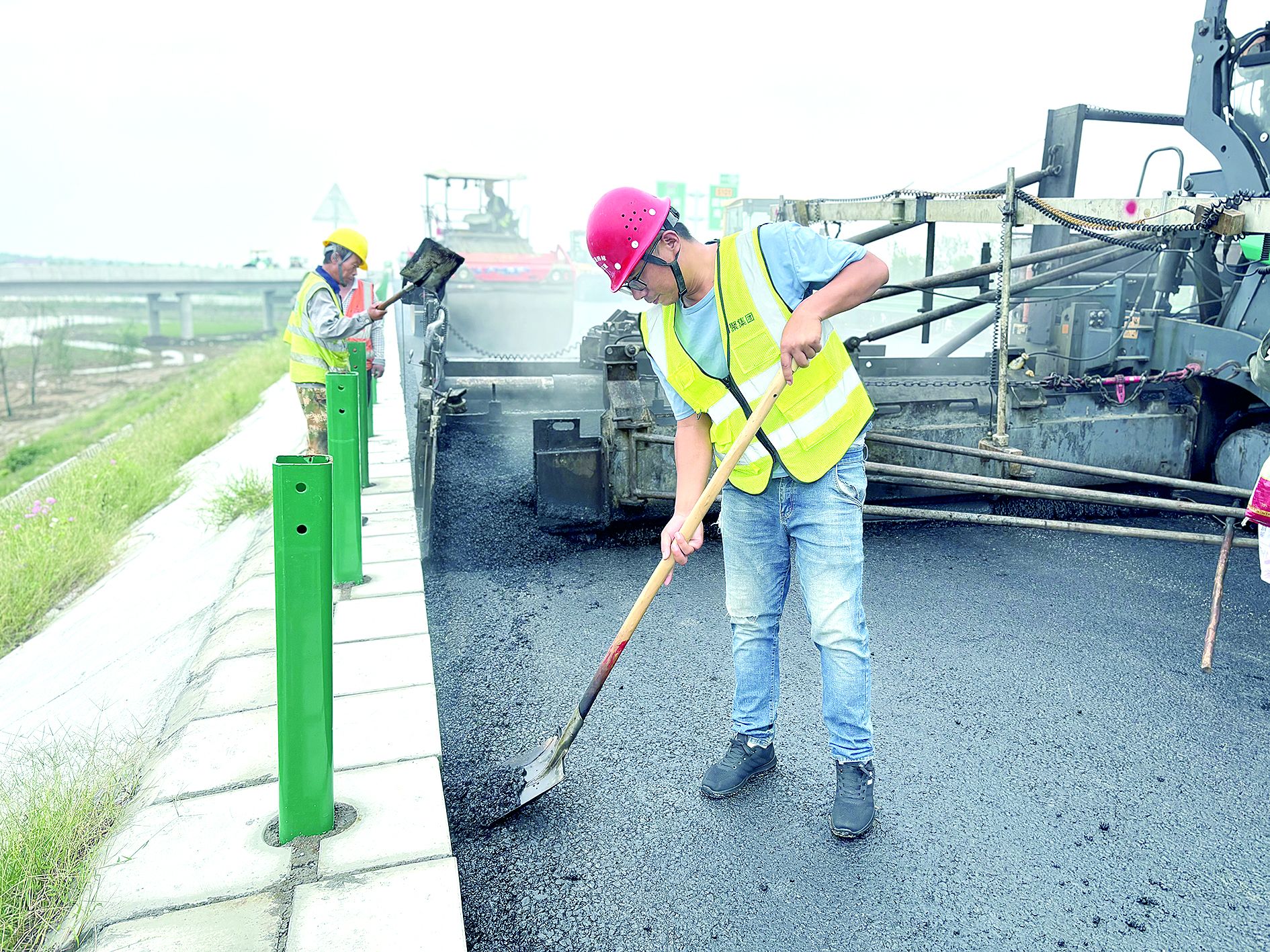 “前一阶段阴雨天影响工期,我们标段在假期安排机械操作工和摊铺人员将近四十人,分两班倒的形式加班加点地抢工期,争取在这几天把工期抢回来。”胡腾伟说,他的老家在舒城,一年多前来到项目上,就一直在沥青摊铺施工一线。“沥青施工是个‘靠天吃饭’的工序,受天气情况影响较大,我们唯有不断调整节奏,确保年底通车目标。”