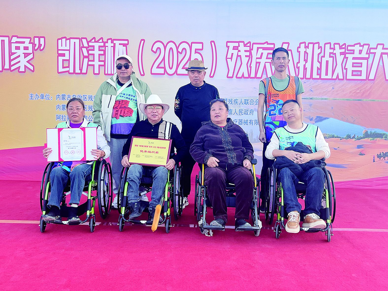 10月13日,第四届“大爱北疆·沙漠印象”凯洋杯(2025)残疾人挑战者大赛在内蒙古巴丹吉林沙漠圆满落幕。由蚌埠市优秀残疾人运动员组建的蚌埠轮椅队,代表安徽省出征本届赛事。队员们以无畏意志挑战沙漠极限,在多个项目中斩获佳绩,最终助力安徽省荣膺大赛“优秀组织奖”,将珠城健儿的风采留在了全国赛场。