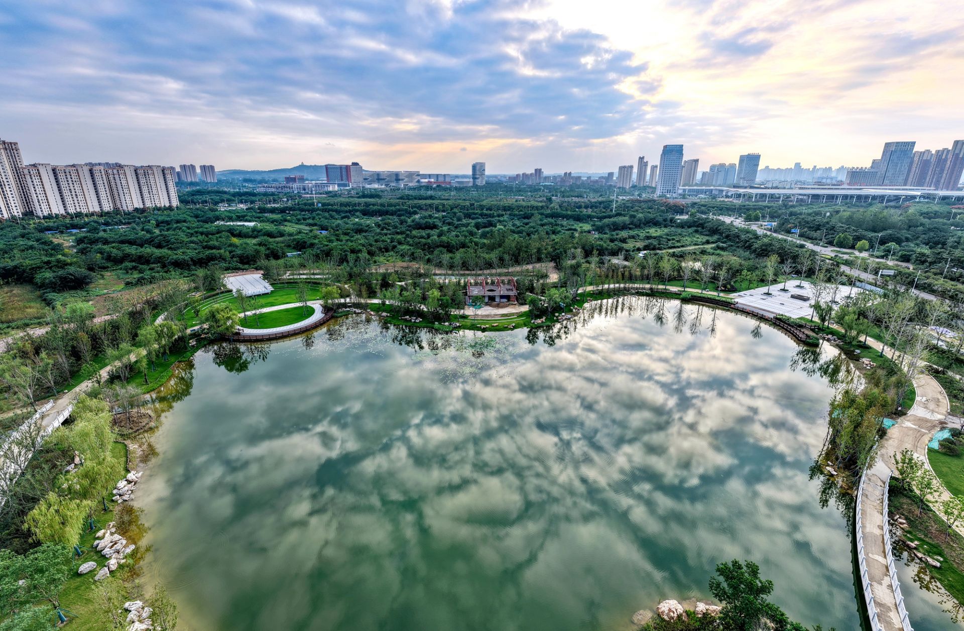 图为蚌埠中央创新区水景观公园秋色宜人。