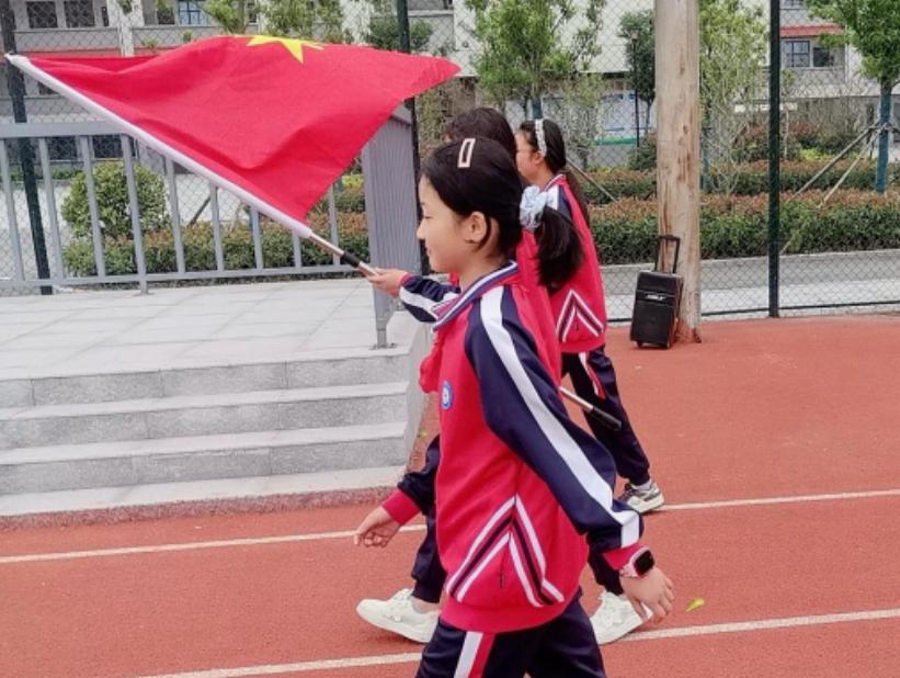 仪式在庄严的《出旗曲》中拉开序幕。旗手们迈着整齐有力的步伐,护送鲜艳的队旗缓缓入场。全体人员肃立,少先队员敬队礼,其他人行注目礼,目光追随着飘扬的队旗,仿佛看到革命先辈用热血铸就的信念,正以星星火炬之势,在少年心中点燃“强国复兴”的壮志。