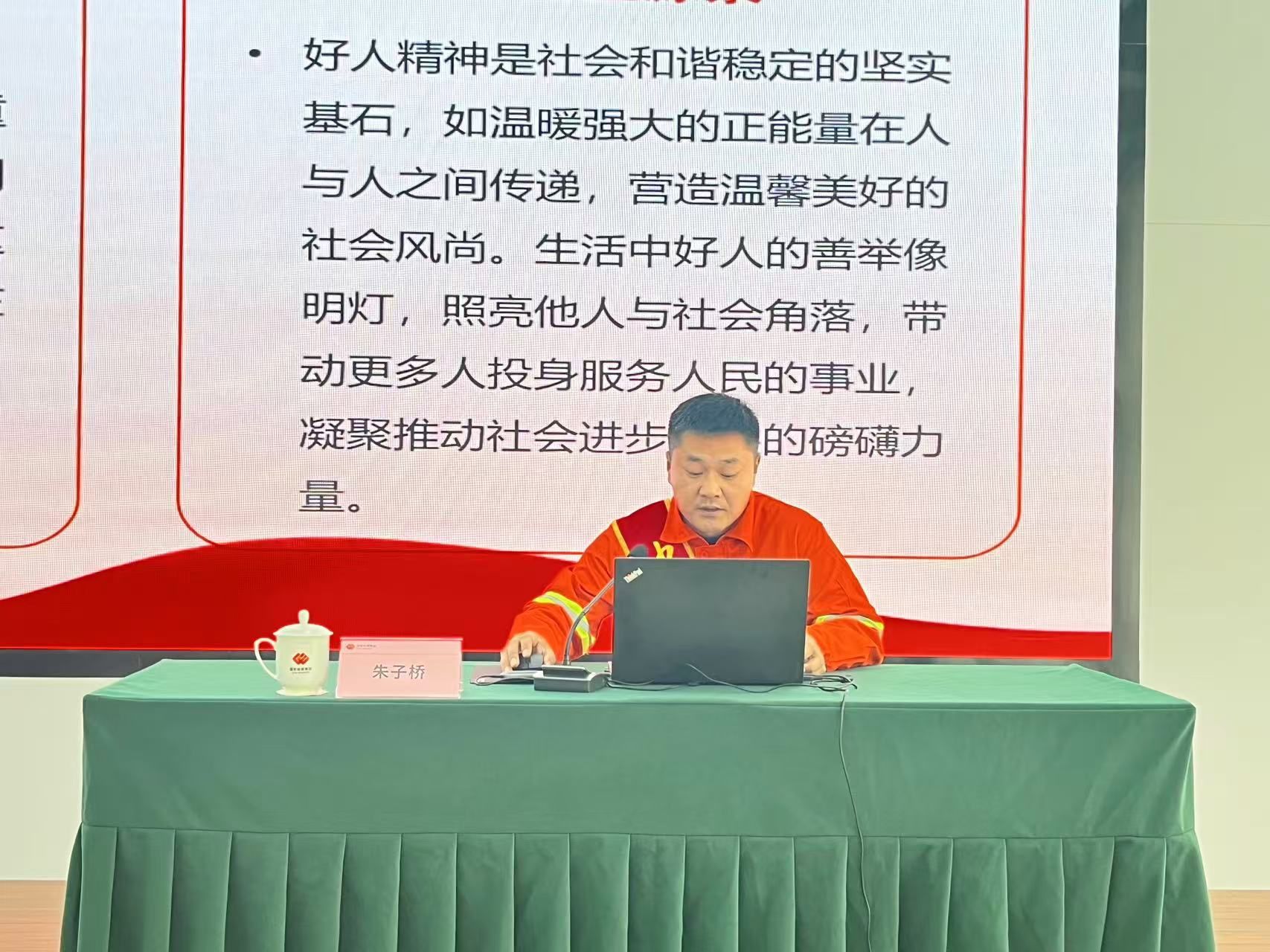 近日,由中共蚌埠市委宣传部主办的“禹风厚德 文明蚌埠”——2025年蚌埠市道德模范、身边好人宣讲活动,走进国能蚌埠发电有限公司,中国好人、蚌埠市蚌固一级公路养路工人朱子桥为在场的职工带来了一场“走心”的宣讲。