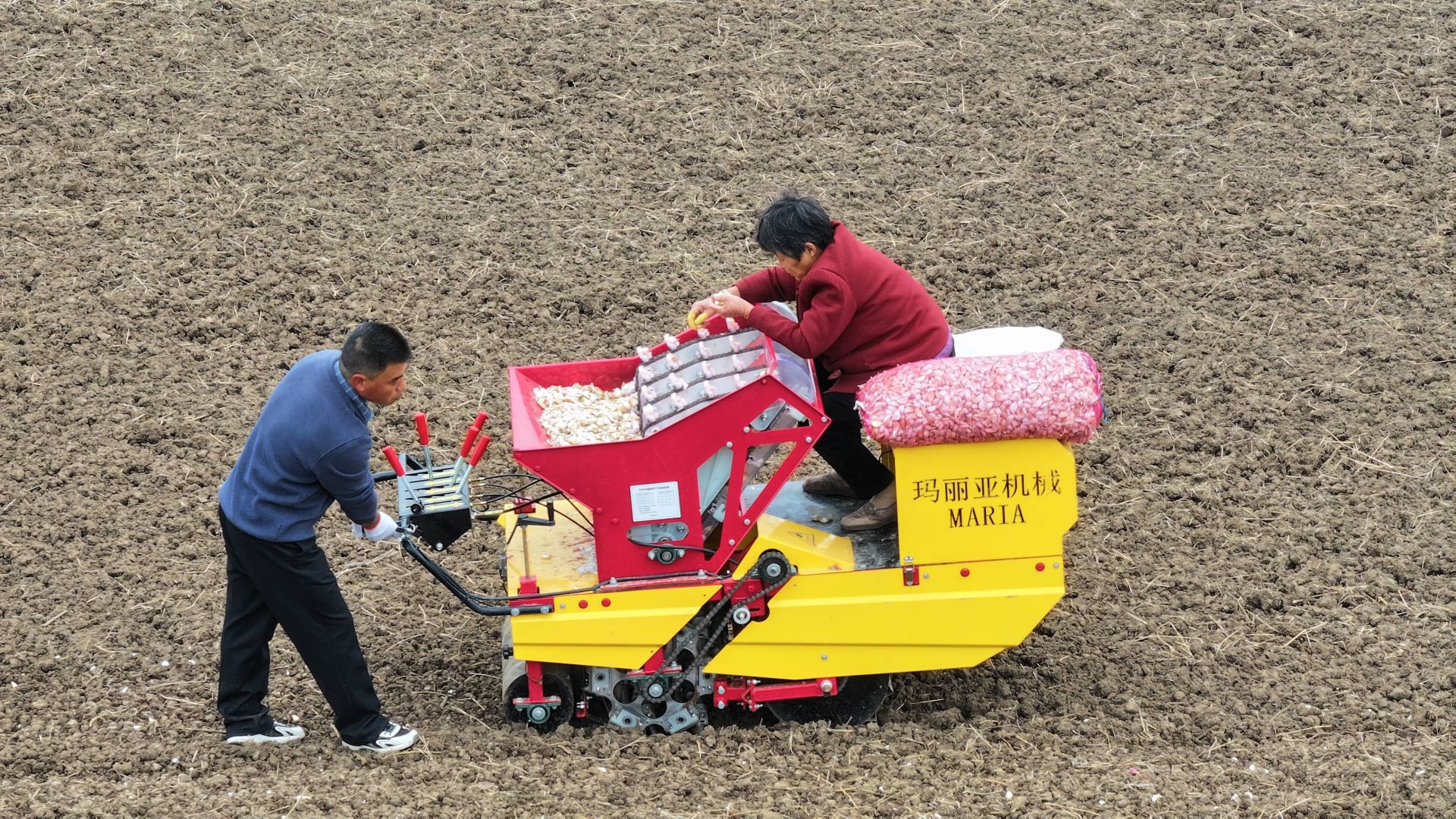 与此同时,以技术入股形式与合作社合作种植1000多亩糖蒜的李东州,已是第三年扎根三岔村。“今年我们引进了10余台大蒜播种机,加上80多人的人工,预计15天左右就能完成全部种植。”李东州一边查看刚播下的蒜种,一边介绍。作为种植实践的先行者,他对周边种蒜村民的请教也倾囊相授:“从蒜种处理的温湿度控制到播种的株距行距,只要有需要,我都会无偿上门指导,务必讲到位。”