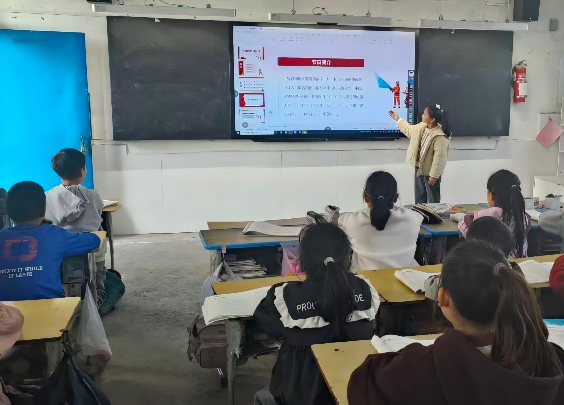 在主题班会上,班主任紧密结合小学生的生活实际场景,采用“案例讲解与情景模拟相结合”的方式开展教学活动。班主任运用生动且精准的语言深入剖析消防知识,使原本抽象的安全常识变得易于理解和掌握。在互动讨论环节中,同学们积极主动地分享“所说的火灾小故事”,并围绕“如何有效预防火灾”这一主题展开了热烈而深入的讨论。