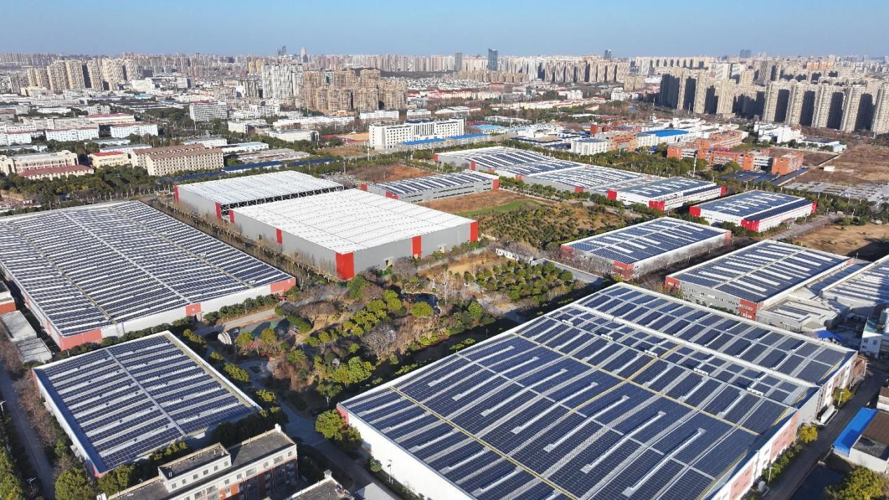 俯瞰蚌埠高新区工厂屋顶的光伏板。 蚌埠高新区管委会党政办供图