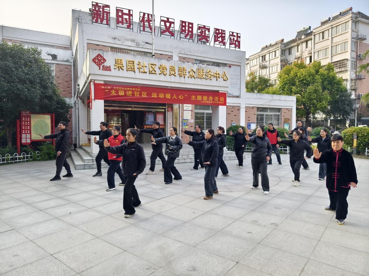为丰富社区居民的精神文化生活,搭建邻里交流平台,11月14日,小蚌埠镇新时代文明实践所联合果园社区新时代文明实践站开展“蚌小爱”志愿服务品牌系列活动——“太极进社区 运动暖人心”主题健身活动,数十位居民身着舒适运动装,在专业教练的带领下,沉浸式感受传统太极的独特魅力。