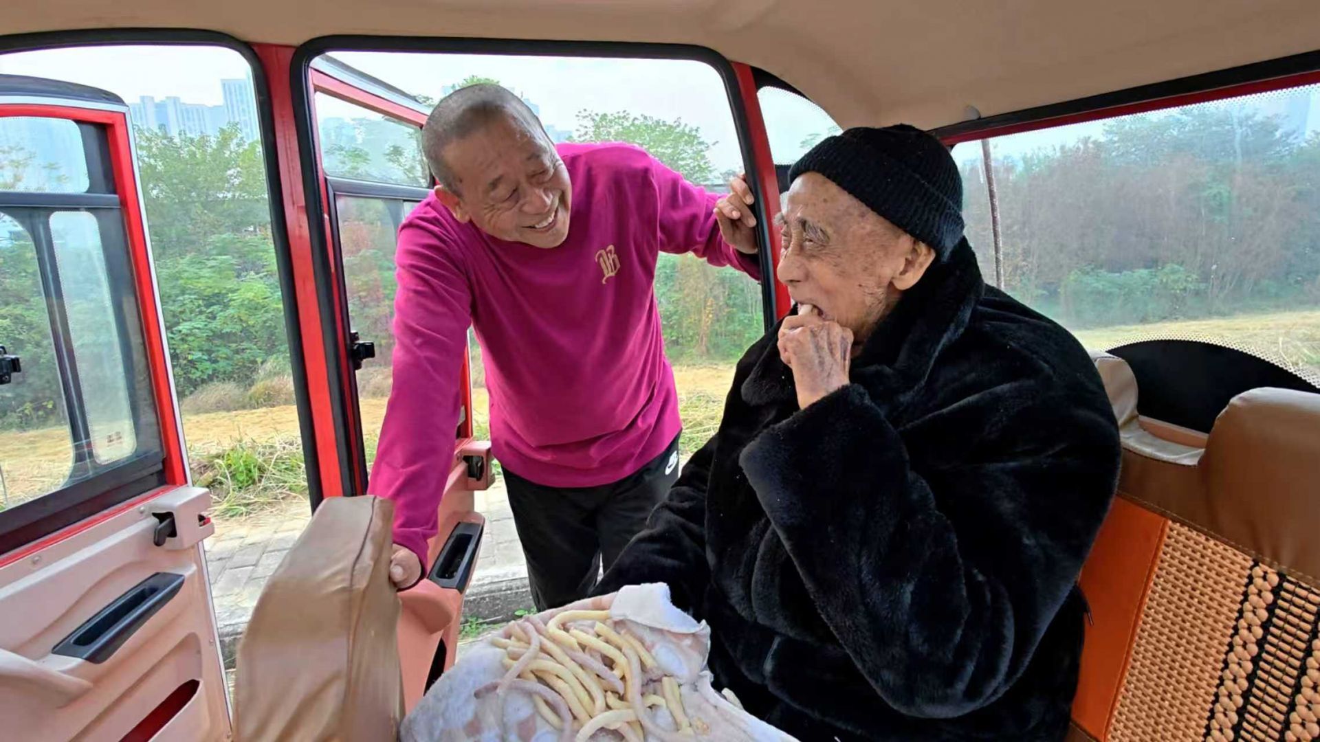 采访中,百岁老人在车里闭目养神,阳光洒在他布满皱纹的脸上,安详惬意。刘德才调整绳结或停车时轻手轻脚,“母亲94岁安详离世,让我和哥哥姐姐们更珍惜陪父亲的日子。”刘德才身形硬朗,说起父亲眼角满是温情。拉车途中,他总跟父亲念叨家常,即便老人偶尔糊涂,也会缓缓睁眼,朝着儿子露出慈祥的笑。河畔微风、淮水粼粼波光与父子间的轻声絮语,构成了淮河岸边最动人的图景。