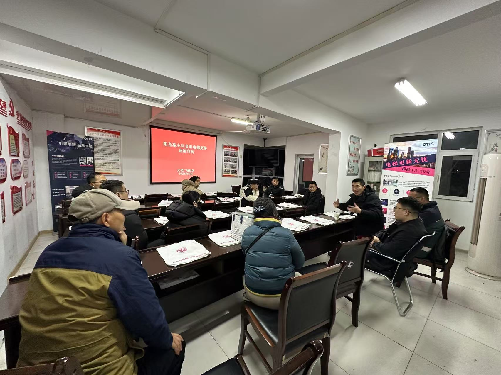 针对电梯改造工作搭建议事平台,成立由社区党组织牵头,业委会、物业、热心党员、楼组长组成的专项工作小组,定期协商积极回应。工作组坚持“三亮三问”,即亮身份、亮政策、亮流程;问需求、问建议、问满意。党员干部带头入户解读政策、倾听诉求。联合城投、安建工单位现场驻点,针对电梯质量、安装标准、后期维保等居民关切开展政策答疑,有效化解居民在安装方案、品牌选择等方面的分歧,尽最大能力凝聚共识,为电梯更新施工夯实民意基础。