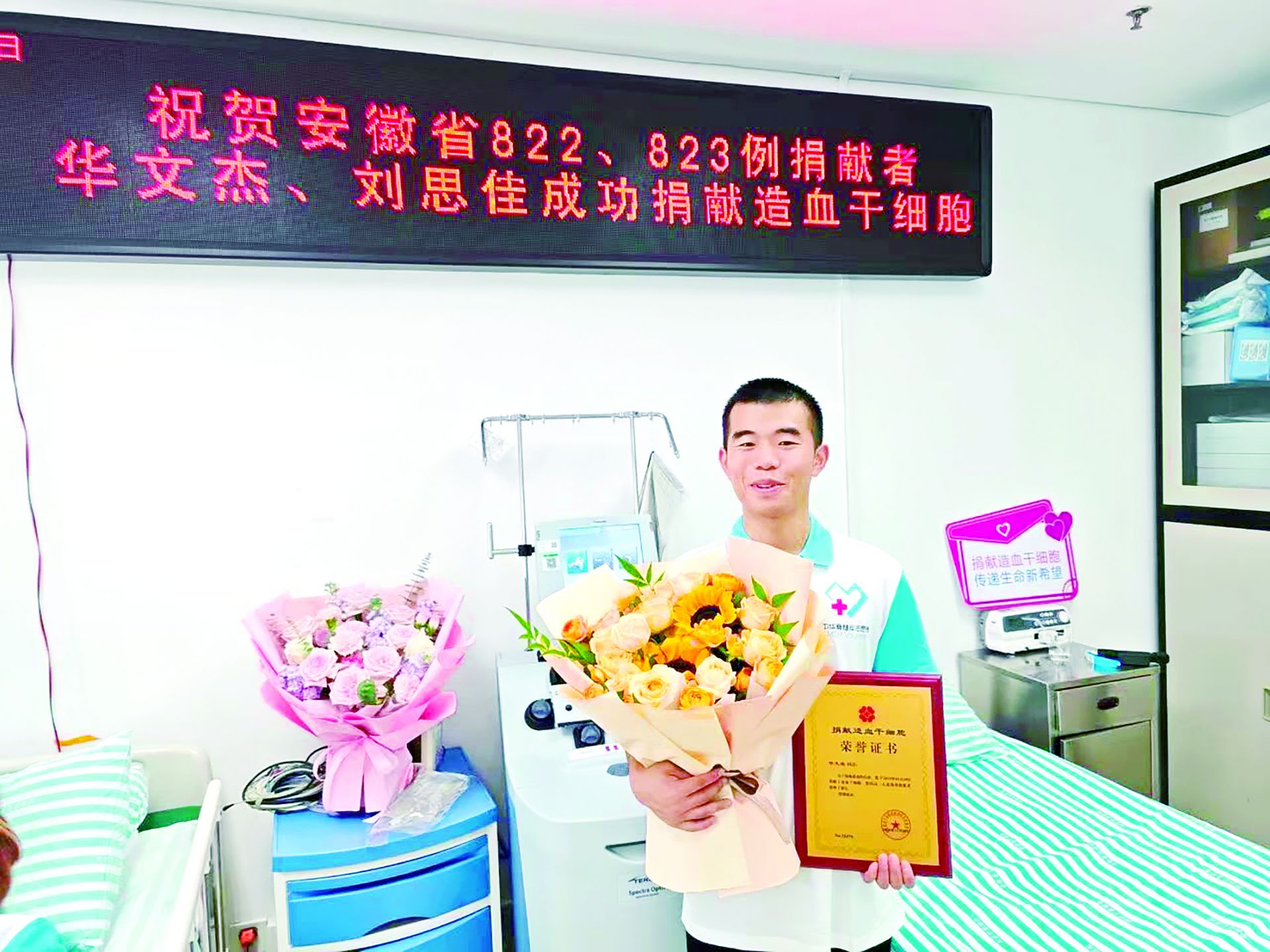 这是一场历时七年的生命之约,这是一次跨越山海的生死接力。11月10日,在安徽省立医院的采集室里,216毫升造血干细胞混悬液如同珍贵的生命火种,从“00后”现役军人华文杰的体内缓缓采集,将为一位素不相识的血液病患者重燃生命之光。华文杰成为安徽省第822例、蚌埠市第30例造血干细胞捐献者。