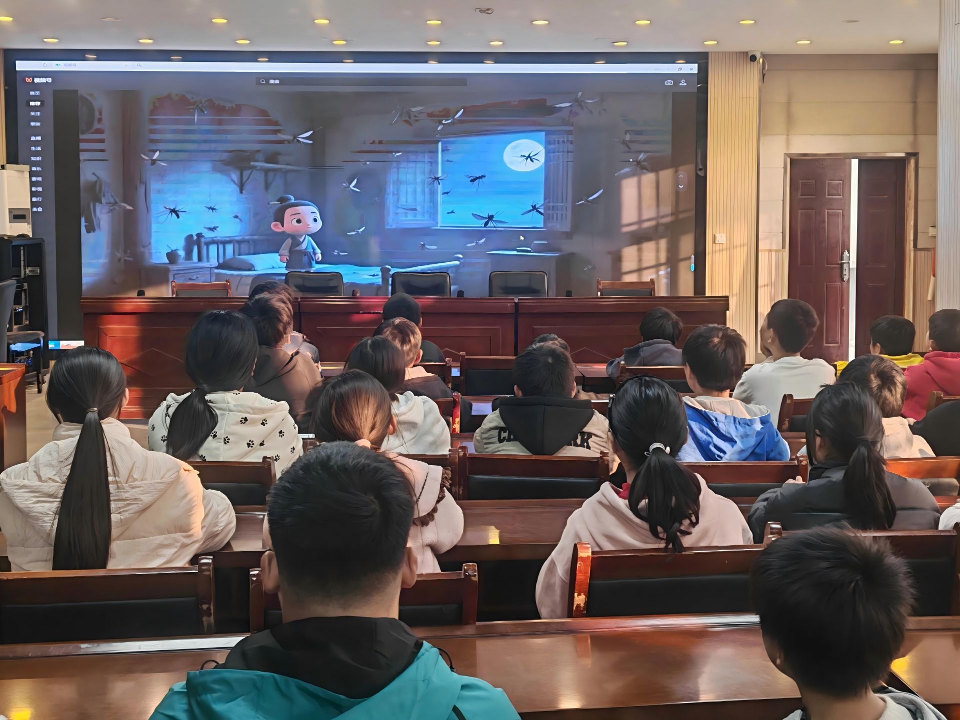 活动中,师生共同欣赏了歌曲《感恩的心》,在悠扬的旋律中传递温暖情感。随后播放的《恣蚊饱血》《程门立雪》两部教育视频,将传统孝道与尊师重道精神具象化。针对《恣蚊饱血》中吴猛以身为盾护父的故事,胡克强引导学生辩证思考:“古人的做法受限于时代条件,但‘爱亲之心’的本质永不过时。我们可以通过陪伴父母、关注他们的健康等方式表达孝心。”而《程门立雪》中杨时、游酢求学时的谦逊态度,则被赋予“尊重知识、敬畏真理”的新时代内涵。